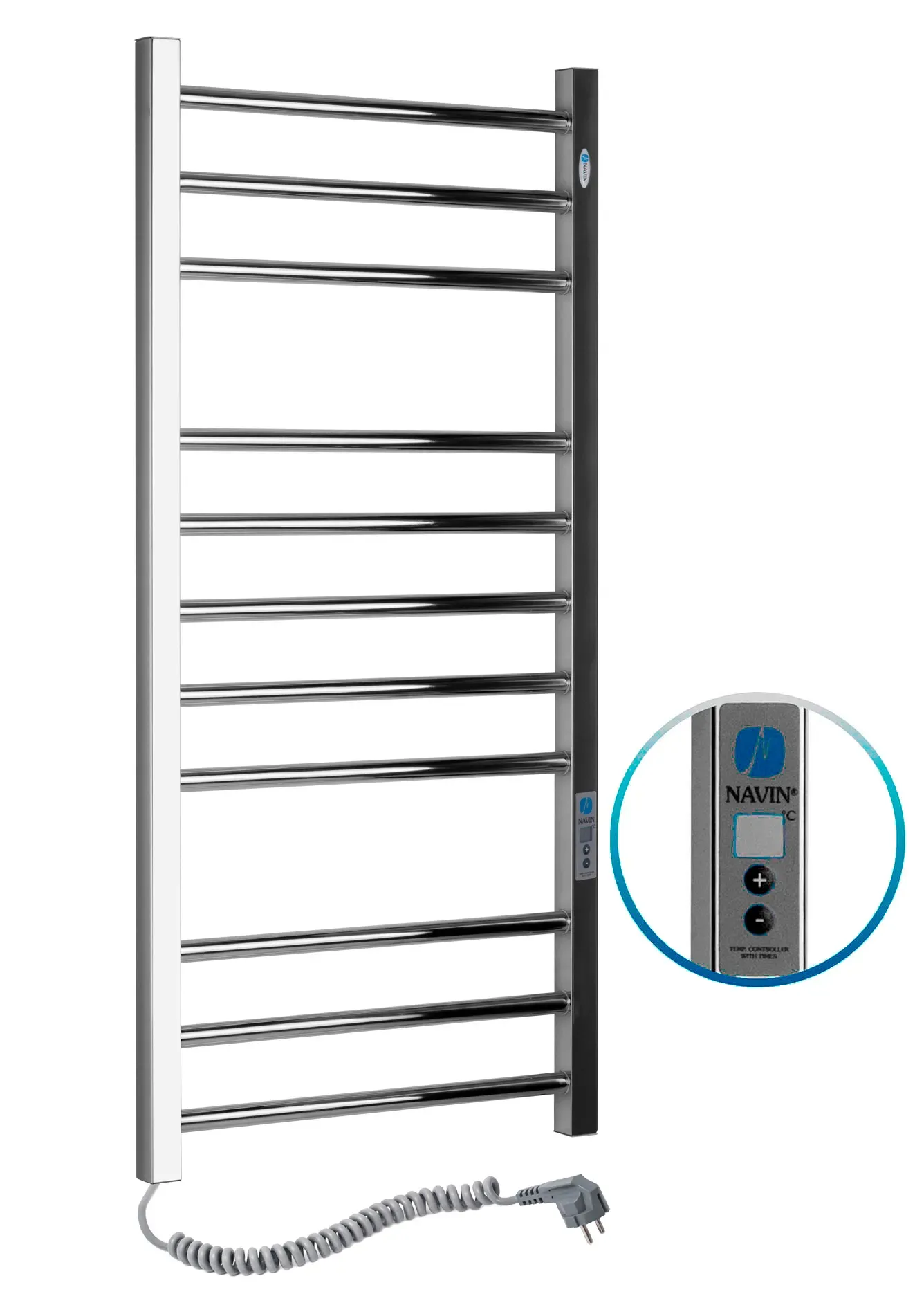 Полотенцесушитель Классик Квадро 500х1000 Digital левая от украинского производителя NAVIN изготовлена из нержавеющей. качеством и крепостью. Толщина стенки перемычек полотенцесушителя составляет 1,5 мм, а боковых коллекторов 2 мм. Тепловая мощность модели составляет: 130 Вт; Рабочая температура (*): 50° + /- 5°C;
