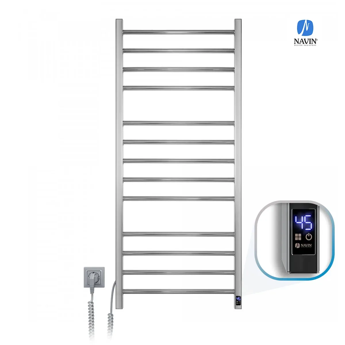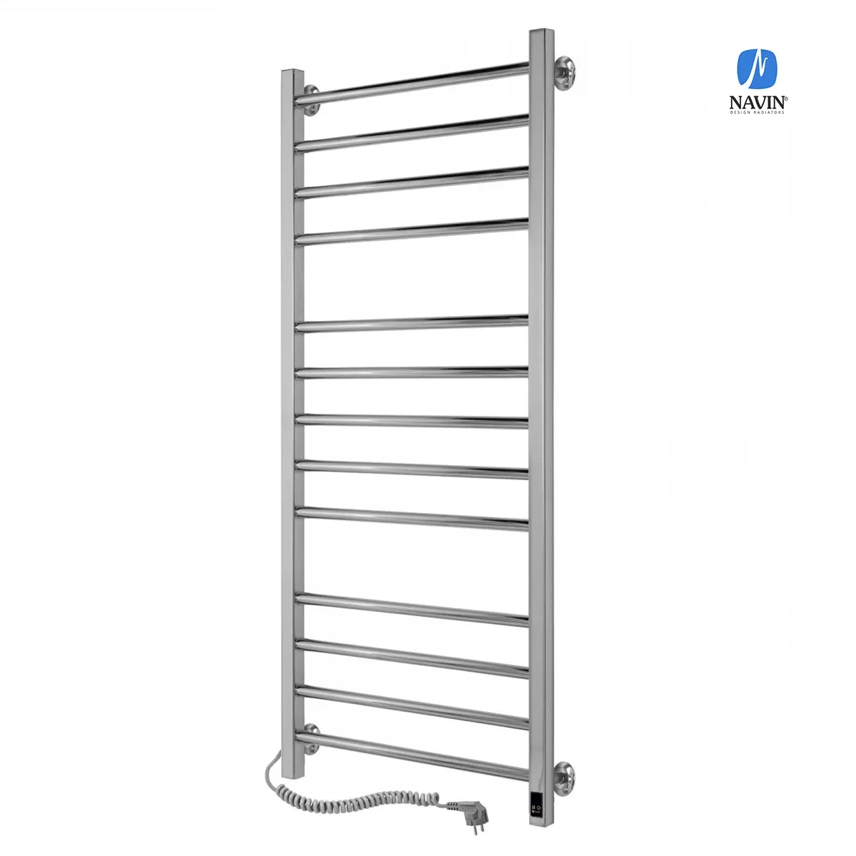 Полотенцесушитель Классик Квадро 500х1200 Sensor (расположение шнура с вилкой - слева) от украинского производителя NAVIN изготовлена из пищевой нержавеющей стали, которая устойчива к царапинам и механическим повреждениям, а также обладает высокой антикоррозионной стойкостью. Толщина стенки перемычек полотенцесушителя составляет 1,5 мм, а боковых стоек (коллекторов) - 2 мм. Сушилка имеет зеркальную полированную поверхность, полученную путем высокоточной электроплазменной полировки.
