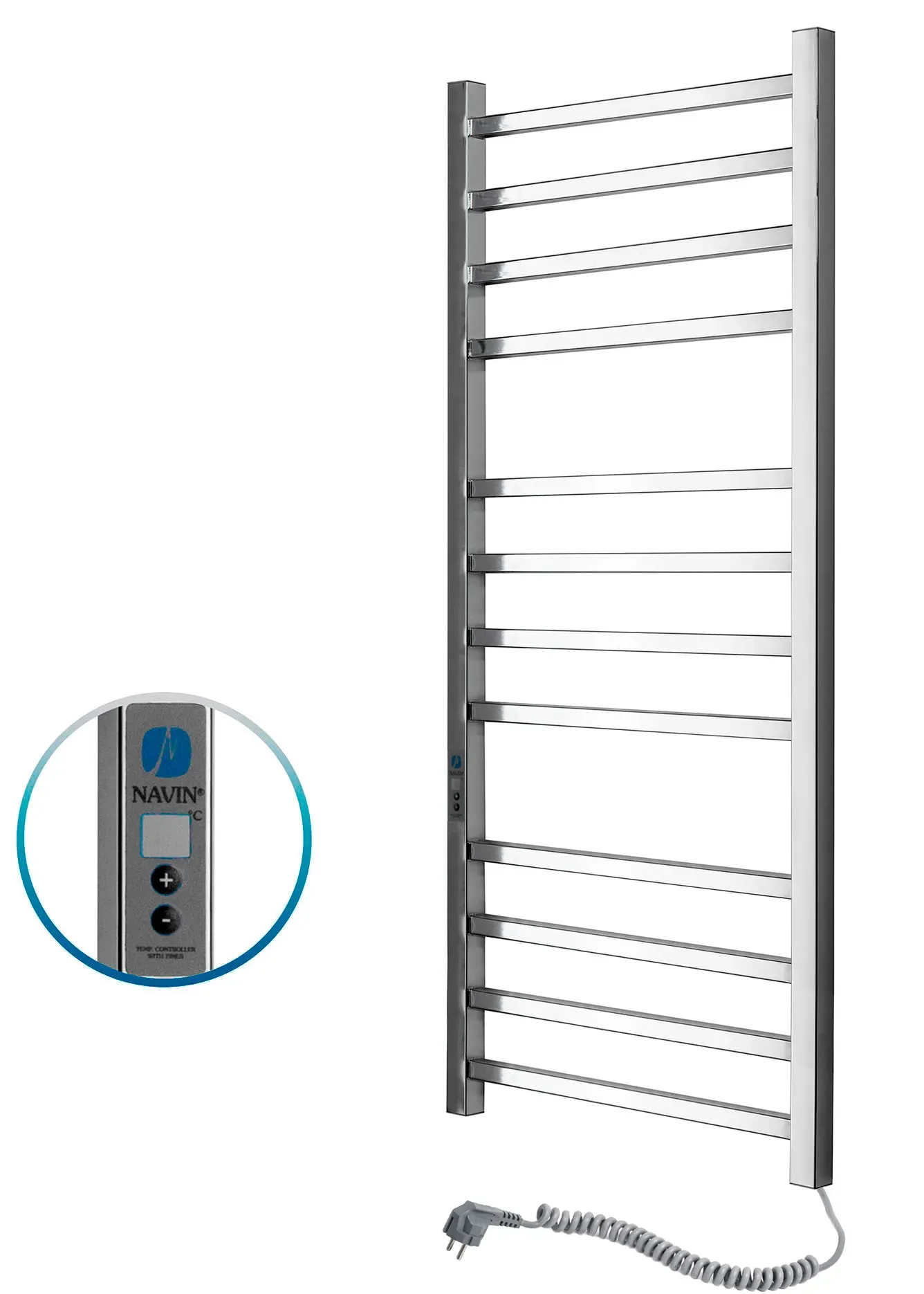 Электрическая полотенцесушитель Loft, коллекторы которой выполнены из профильной квадратной трубы 30х30 мм, а перемычки из прямоугольных трубок 20х20мм, что придает ему монументальность и однозначность формы. Прямые линии, четкие углы в сочетании с квадратным профилем образуют модный ныне дизайн строгих геометрических форм без компромиссов. Полотенцесушитель Loft 500х1200 Digital права от украинского производителя NAVIN изготовлен из нержавеющей стали, которая отличается высоким качеством и прочностью. Толщина стенки перемычек полотенцесушителя составляет 1,5 мм, а боковых коллекторов 2 мм. Тепловая мощность модели составляет: 150 Вт; Рабочая температура (*): 50° + /- 5°C;