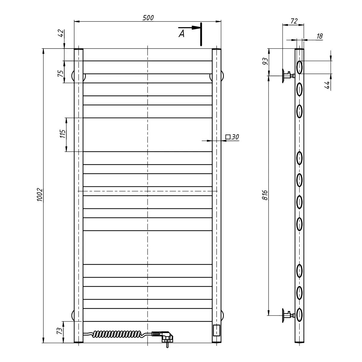 Электрическая полотенцесушитель NAVIN Ellipseимеет коллекторы, выполненные из профильной квадратной трубы 30х30 мм, а перемычки — из овальных трубок 40х10 мм, что придает этой модели монументальность и однозначность формы. Овальные линии в сочетании с квадратным профилем образуют оригинальный дизайн. Полотенцесушитель Ellipse 500х1000 Sensor (хром, расположение шнура с вилкой — слева) от украинского производителя < strong>NAVIN изготовлена из нержавеющей стали, которая устойчива к царапинам и механическим повреждениям, а также обладает высокой антикоррозионной стойкостью. Толщина стенки перемычек полотенцесушителя составляет 1,5 мм, а боковых стоек (коллекторов) - 2 мм. Сушилка имеет зеркальную полированную поверхность, полученную путем высокоточной электроплазменной полировки. Толщина стенки коллекторов (стоек) и перемычек сушилки равна 1,5 мм. Тепловая мощность модели — 130 Вт