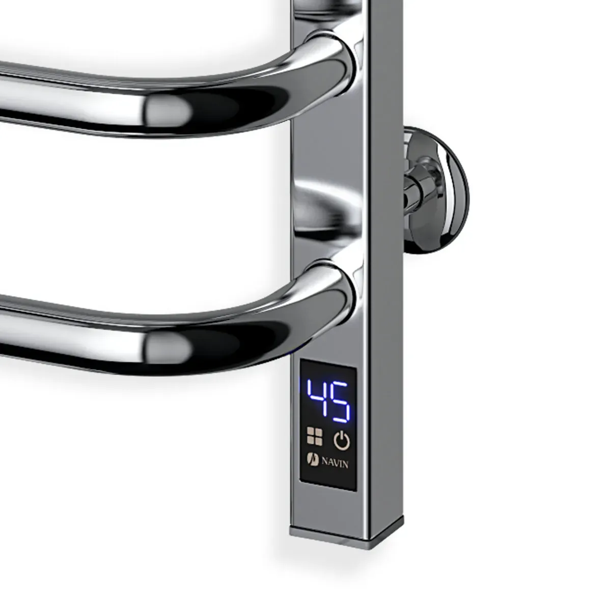 Электрическая полотенцесушитель NAVIN Грандис. Модель имеет боковые коллекторы (стойки), выполненные из профильной квадратной трубы 30х30 мм, а перемычки – из круглых трубок 20х20 мм. Это создает простую, строгую и совершенно привлекательную геометрическую гармонию.