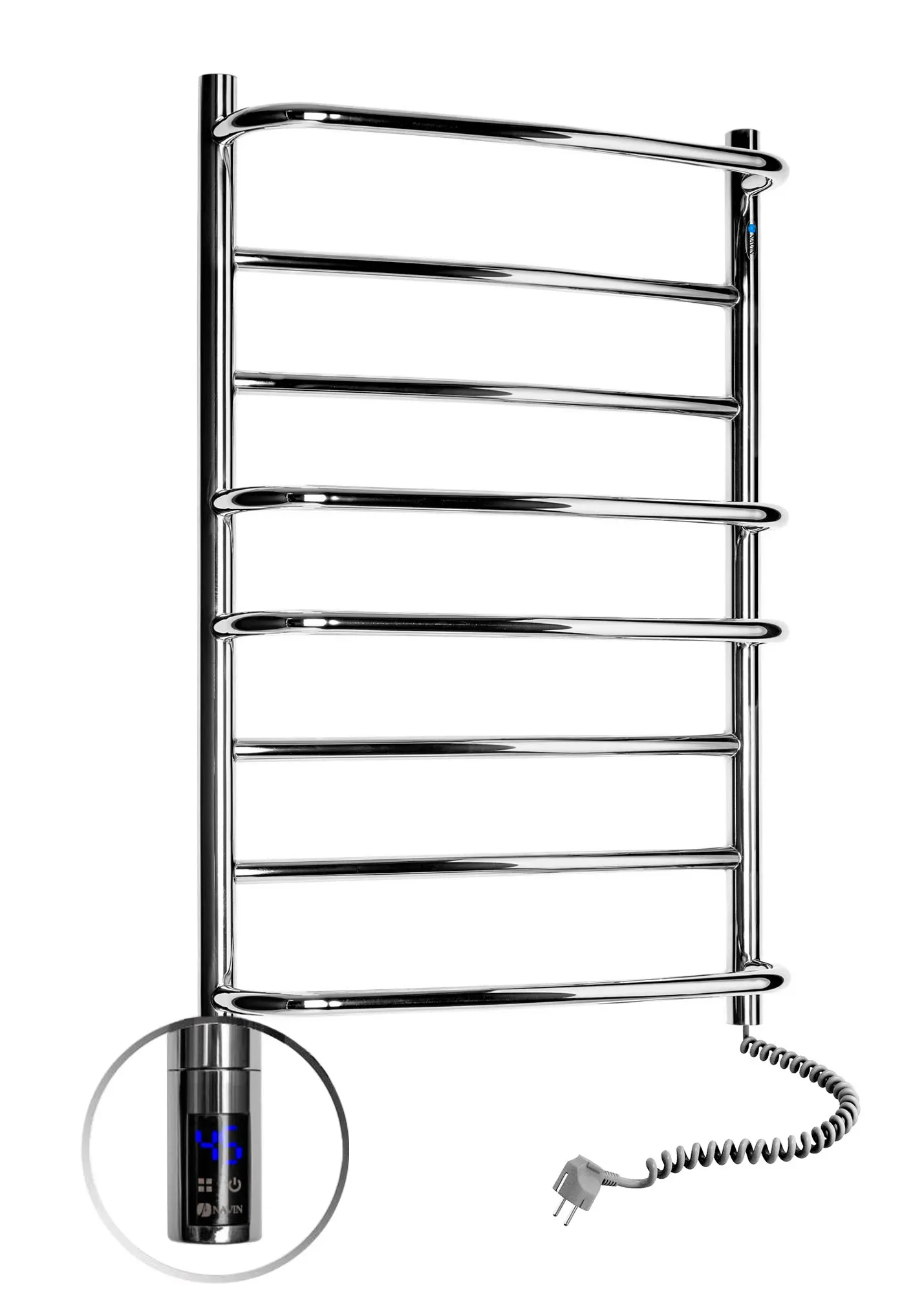 Электрическая полотенцесушитель Омега 530х800 сенсор с таймером, от украинского производителя NAVIN изготовлена из нержавеющей стали, которая является стойкой к царапинам и механическим повреждениям, а также обладает высокой антикоррозионной стойкостью. Толщина стенки перемычек полотенцесушителя составляет 1,5 мм, а стоек 2 мм. Полотенцесушитель имеет зеркальную полированную поверхность, полученную путем высокоточной электроплазменной полировки.