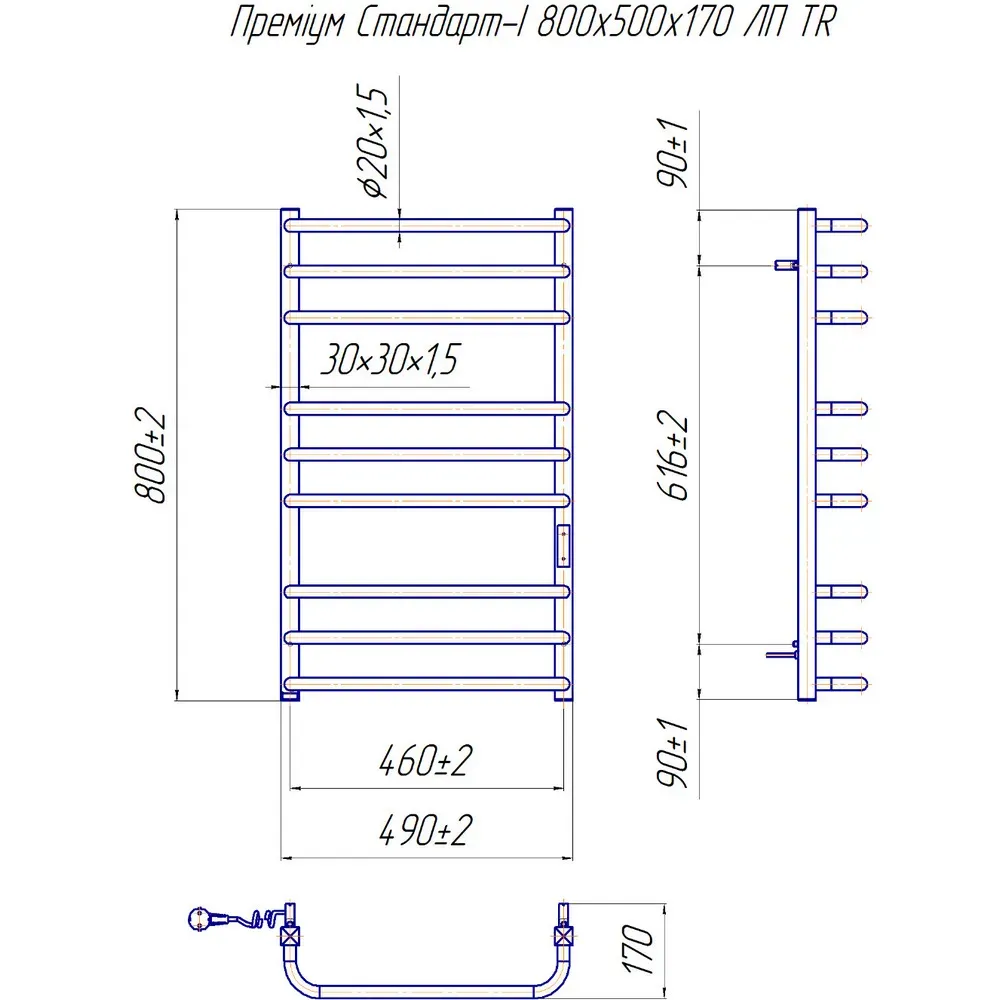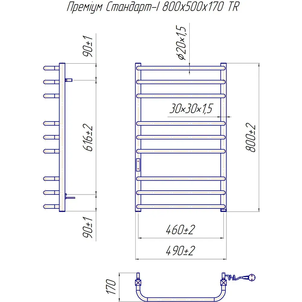 Электрический полотенцесушитель Премиум Стандарт - І. Как и все модели компании Марио, полотенцесушитель изготовлен из нержавеющей стали AISI 304. Сочетание функциональности модели и ее дизайна станет главной изюминкой ванной комнаты. А тепловой мощности будет достаточно, чтобы просушить влажные полотенца, бельё и другие вещи.