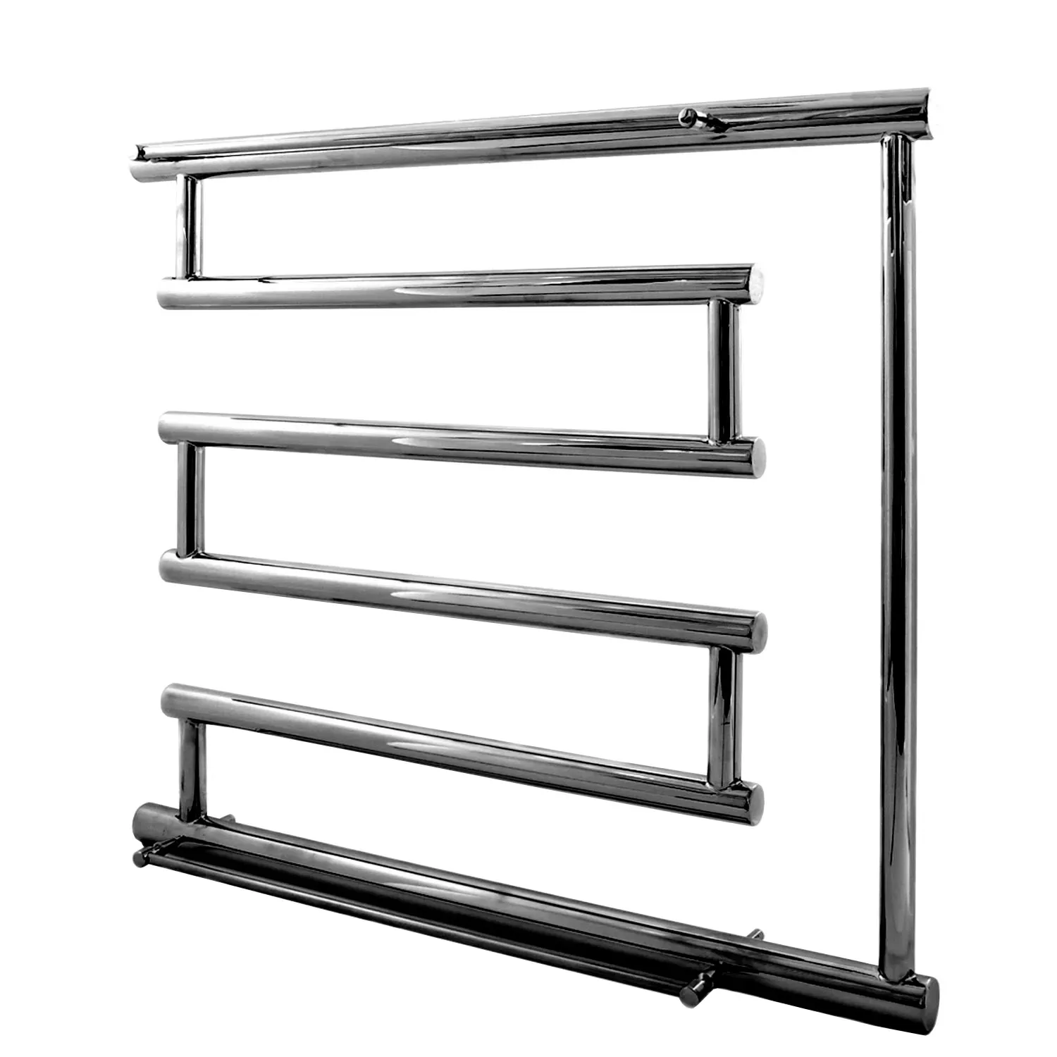 Водяное полотенцесушитель Креатив 500х600 от украинского производителя NAVIN изготовлен из пищевой нержавеющей стали, которая является устойчивой к царапинам и механическим повреждениям, а также обладает высокой антикоррозионной стойкостью. Толщина стенки полотенцесушителя составляет 2 мм и имеет зеркальную полированную поверхность, полученную путем высокоточной электроплазменной полировки.