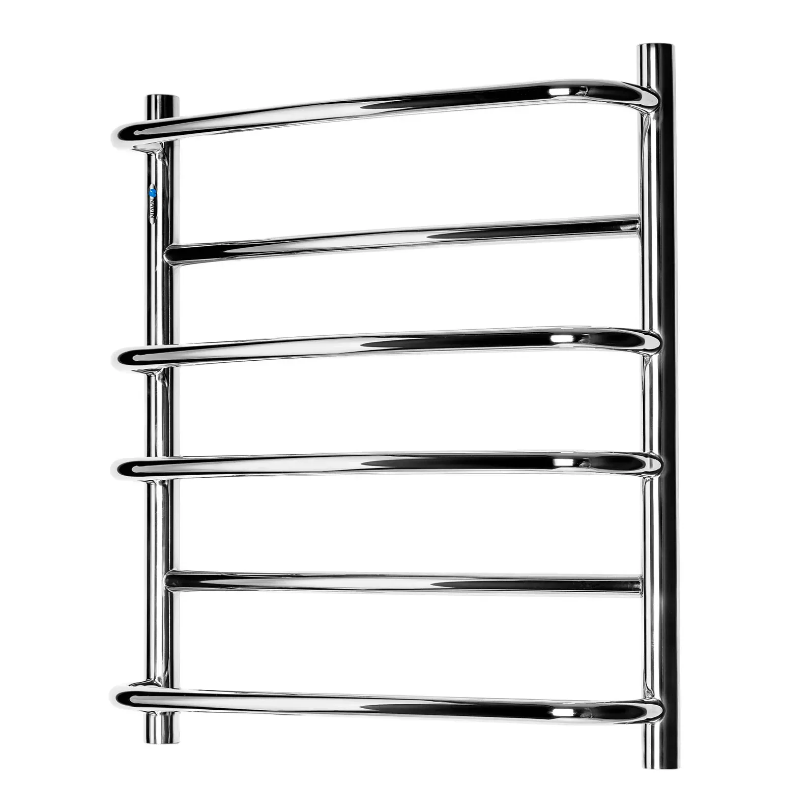Водяная полотенцесушитель Омега 500х600 от украинского производителя NAVIN изготовлена из пищевой нержавеющей стали, которая устойчива к царапинам и механическим повреждениям, а также обладает высокой антикоррозионной стойкостью. Толщина стенки полотенцесушителя составляет 2 мм и имеет зеркальную полированную поверхность, полученную путем высокоточной электроплазменной полировки.