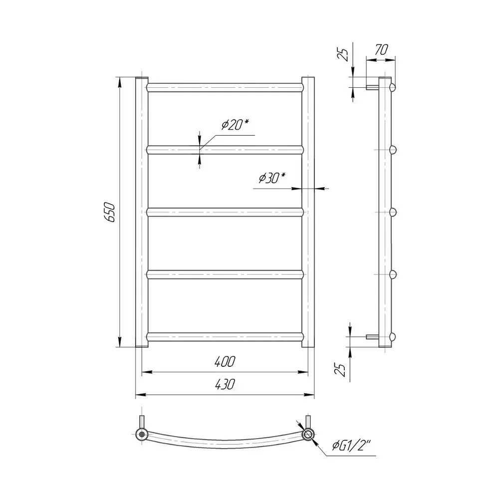 Диаметр: стойка Ø30, толщина 2мм; перемычка Ø20, толщина 1,5 мм