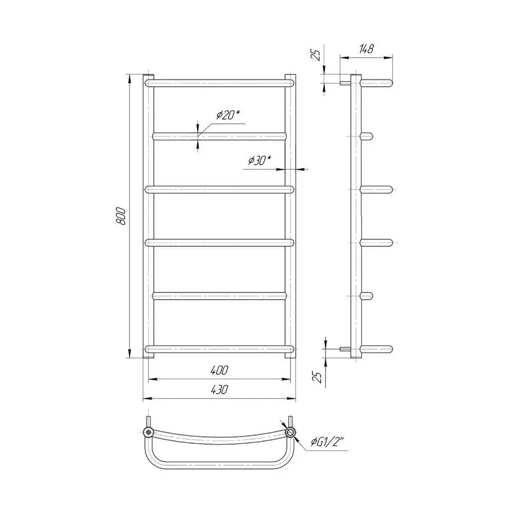 Диаметр: стойка Ø30, толщина 2мм; перемычка Ø20, толщина 1,5 мм