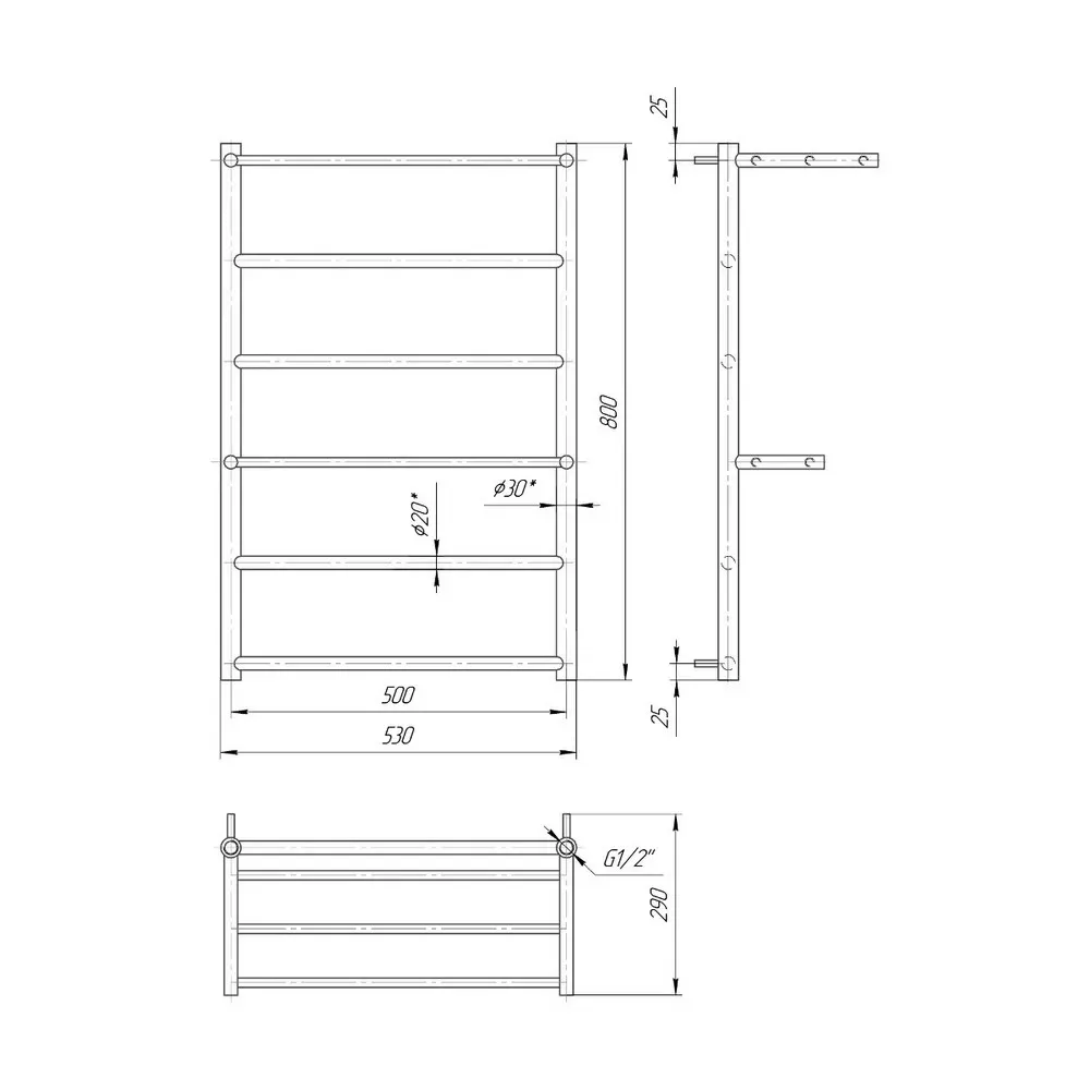 Диаметр: стойка Ø30, толщина 2мм; перемычка Ø20, толщина 1,5 мм