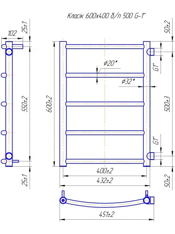 Диаметр: стойка Ø30, толщина 2мм; перемычка Ø20, толщина 1,5 мм