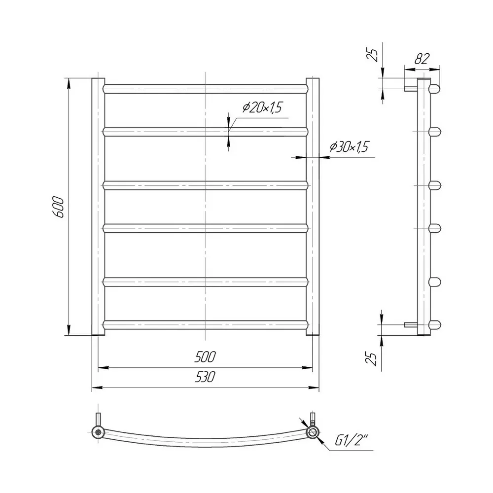 Диаметр: стойка Ø30, толщина 2мм; перемычка Ø20, толщина 1,5 мм