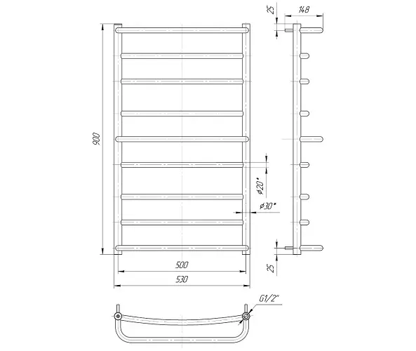 Диаметр: стойка Ø30, толщина 2мм; перемычка Ø20, толщина 1,5 мм