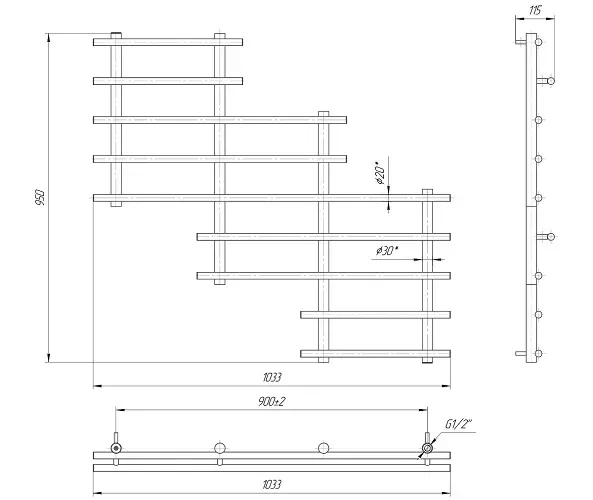 Диаметр: стойка Ø30, толщина 2мм; перемычка Ø20, толщина 1,5 мм