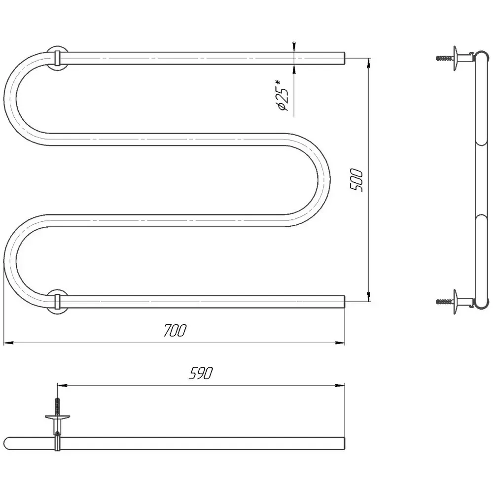 Полотенцесушитель Змейка 525х700 ∅25