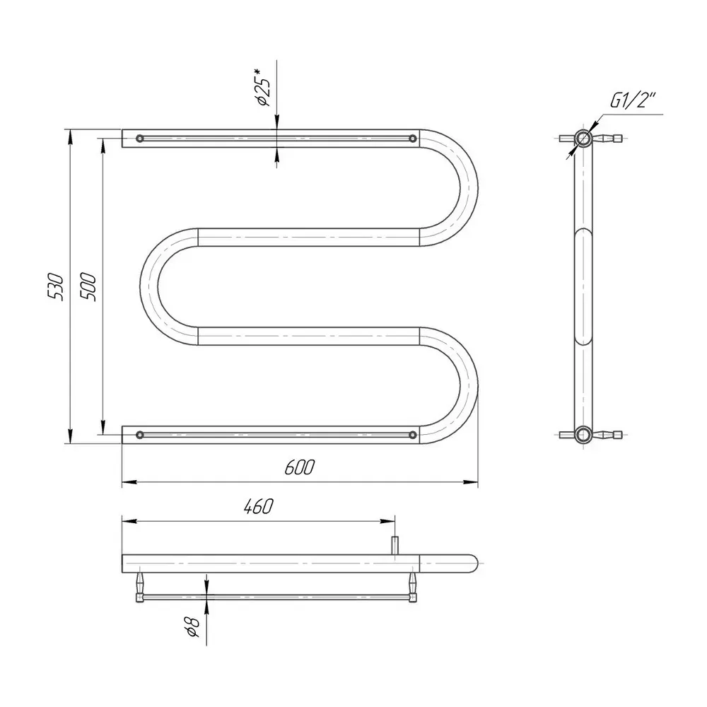 Полотенцесушитель Змейка + полочки 525х600 - качественный и компактный вариант для сушки полотенец, одежды и белья.