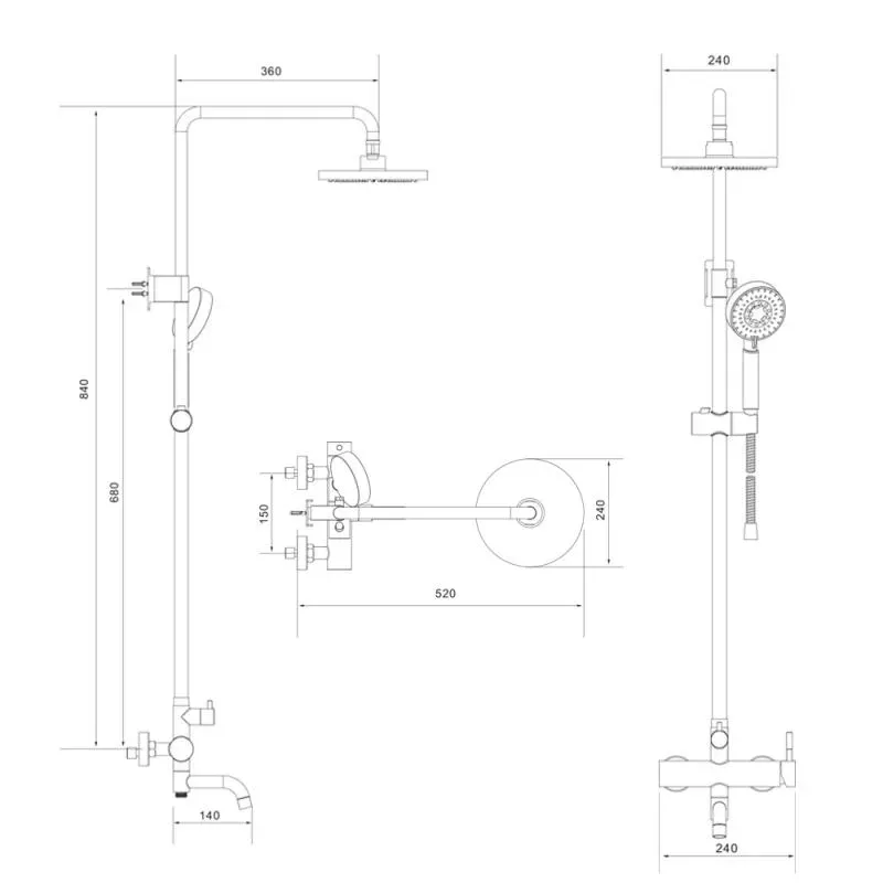 Душевая система для кабины lidz aria 1031 на три потребителя (с изливом) (k35) ldari1031bla43370 black