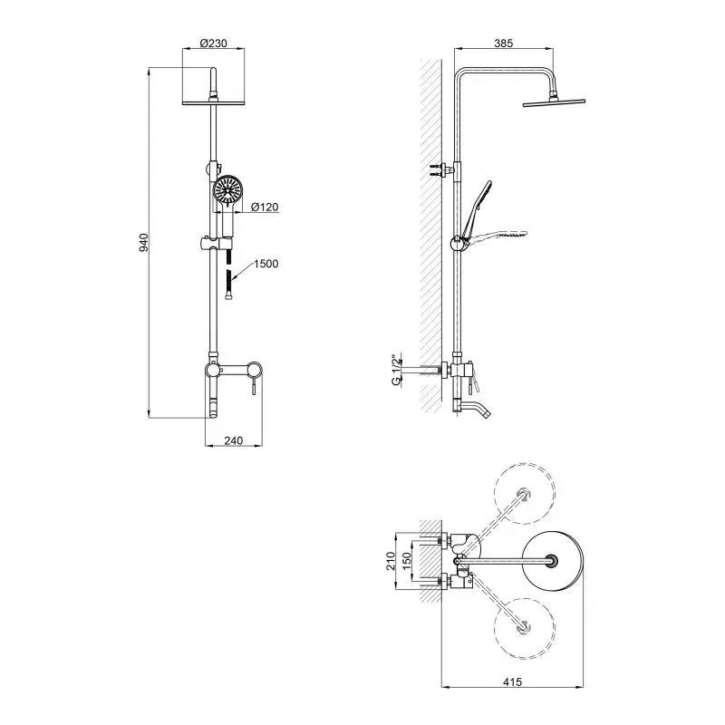 Душевая система для кабины lidz aria 1032 на три потребителя (с изливом) (k35) ldari1032bla43371 black