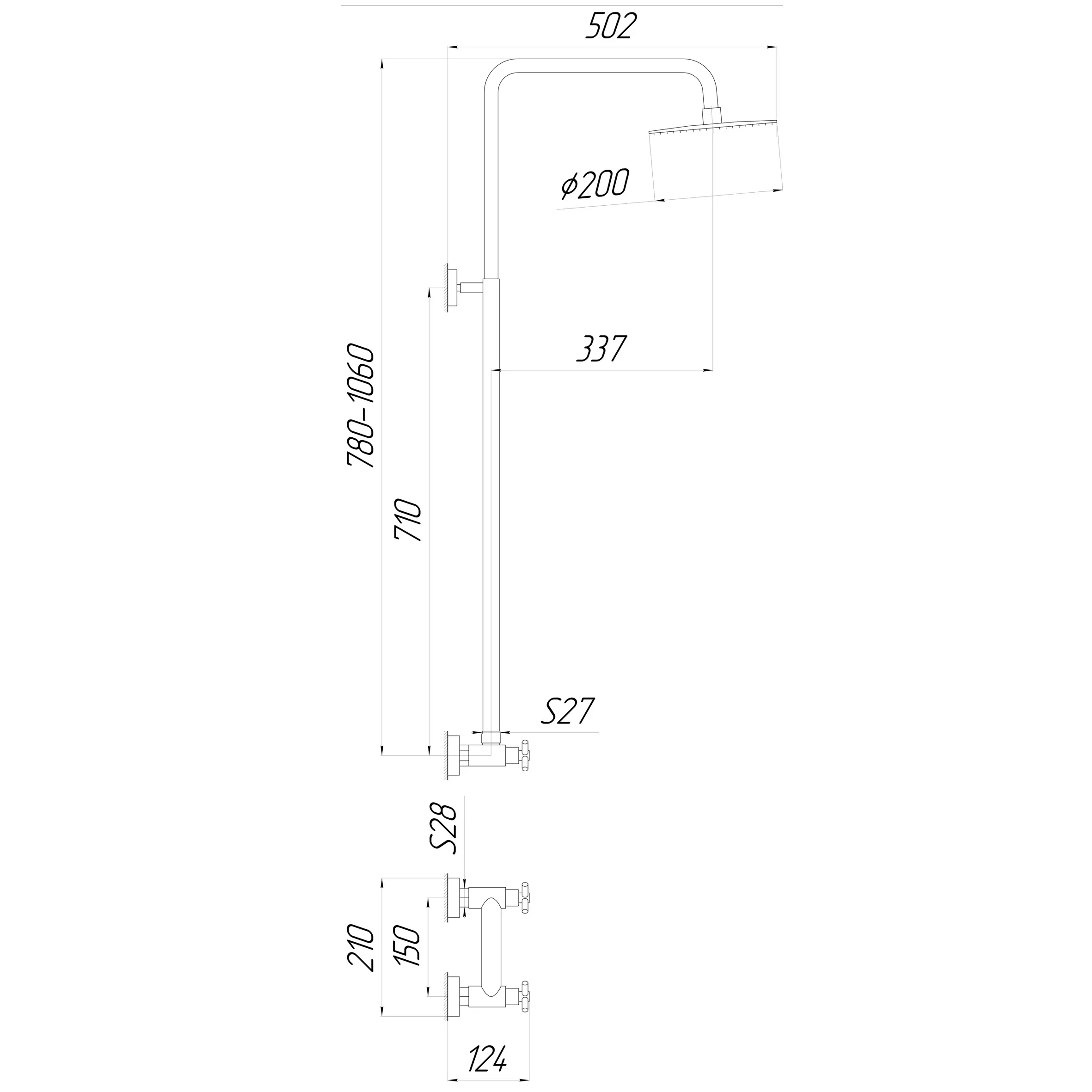 - верхний душ - круглая лейка ø20 см, стойка ( 80-110 см )