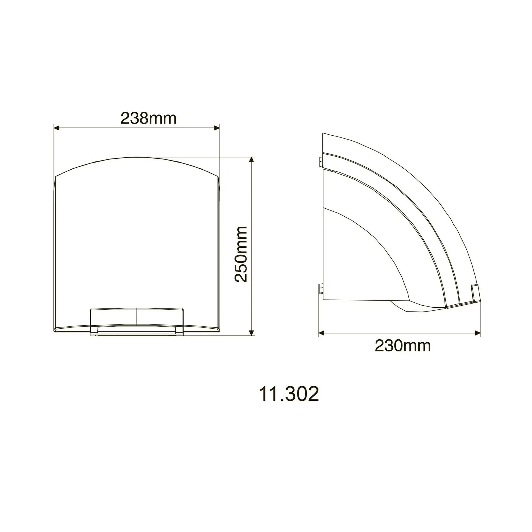 ТЕХНИЧЕСКИЕ ХАРАКТЕРИСТИКИ Артикул - 11.302 Размер: 250x238x230мм Вес: 2.5 кг Напряжение: 220-240V Частота: 50 / 60Гц Суммарная мощность: 1800Вт Мощность двигателя: 60Вт Уровень защиты: IPX1 Уровень шума: <70Дб Температура: 65 ° С Время сушки: 30-40 сек Скорость движения воздуха: 11 м / сек Автоматическое отключение: 60 сек Материал: ABS Покрытие: белое