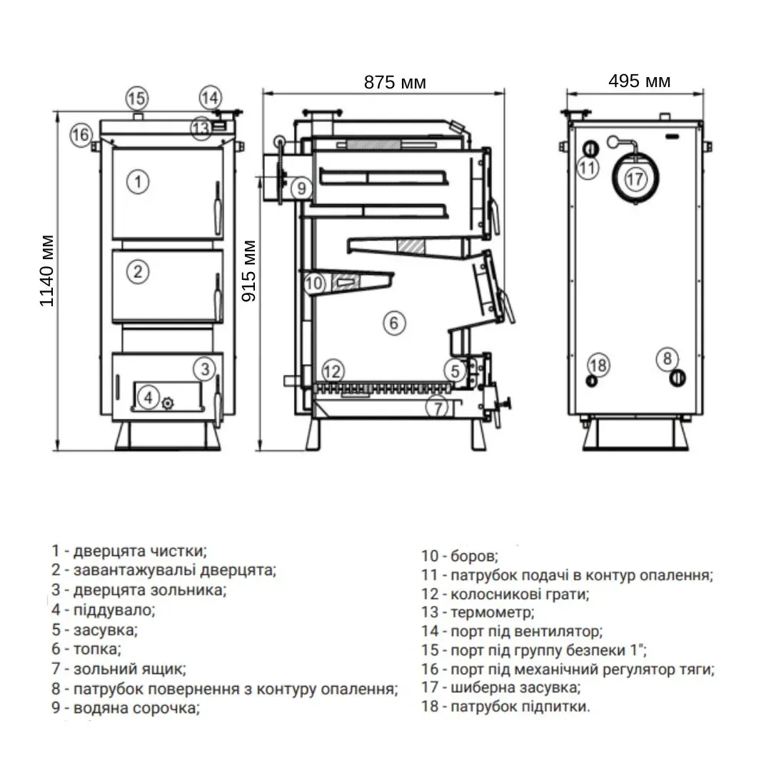 Твердотопливный котел Thermo Alliance Vulcan SF 18 V3.0 — современное водогрейное устройство, работающее на таких видах топлива, как каменный уголь, дрова, брикеты из опилок или торфа. Высокоэффективный котел (КПД на дровах не ниже 85%) обеспечит работу автономной системы отопления в холодный период года. Изделие снабжено портами для подключения вентилятора, группы безопасности, механического регулятора тяги. Решетки колосниковые сделаны из чугуна. Дверцу можно перевешивать.