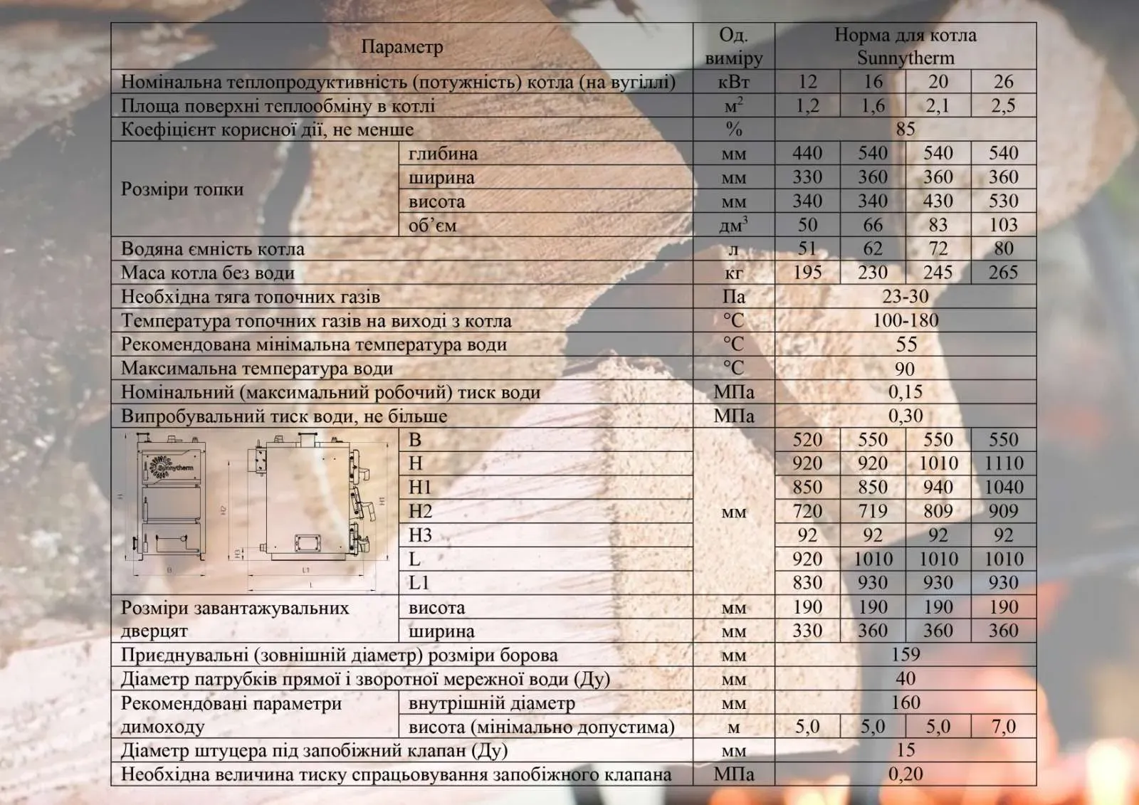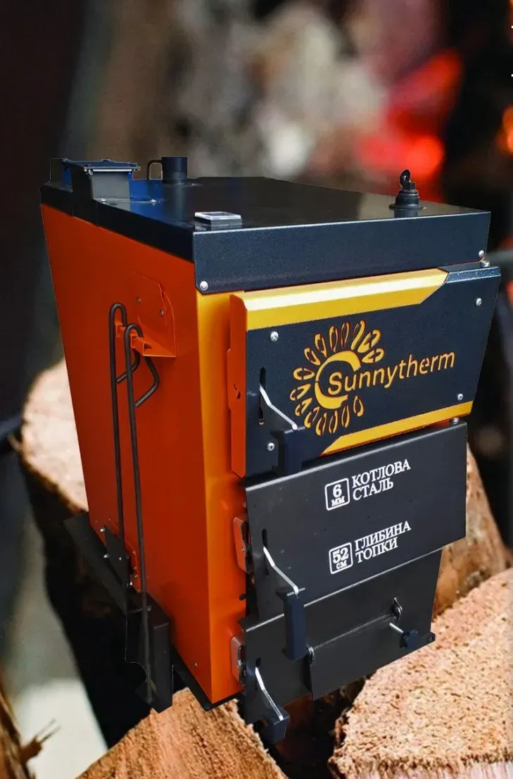 ел твердопаливний Sunny Therm 16 кВт виготовляється на спеціалізованому українському підприємстві. Дана модель вважається новинкою 2019 року, яка була розроблена з урахуванням всіх вимог і критеріїв, які виставляються до котлів твердопаливних від споживачів. Теплова потужність в 16 кВт покриває для обігріву площі до 160 кв.м. Твердопаливні котли рік за роком впевнено відвойовують свою частку ринку серед опалювальних котлів, що працюють на інших видах У порівнянні з аналогами від інших виробників, котел твердопаливний Sunny Therm 16 кВт має такі плюси і якості: теплообмінник всередині котла зроблений з високоякісної 6 міліметрової сталі; топка збільшена за глибиною, становить 52 см; рівень ККД більше 86%; здатний здійснювати горіння до 4-6 годин на одному завантаженні; всі три дверцяти можна регулювати для здійснення контролю за темпом горіння і регулювання обсягу подаваємого в систему повітря; дуже доступна ціна, в порівнянні з аналогічними котлами від інших виробників в Україні; решітка колосникова виготовлена з чавуну; універсальний за вживаним паливом (дрова і відходи, брикети, вугілля); опціонально, передбачена можливість установки автоматики; заводська гарантія 5 років