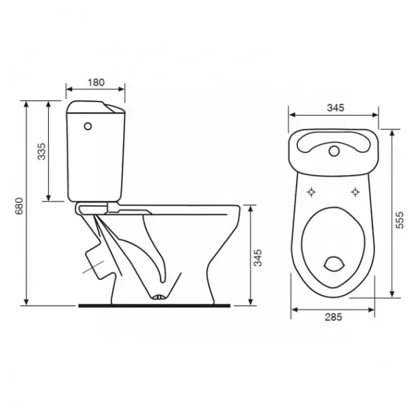 В комплект входит: унитаз, бачок, крышка унитаза, крепления к полу.