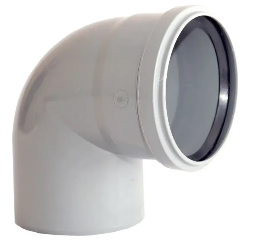 Колено канализационное ПП. Горловина 110 мм, труба 100 мм. Цвет серый. Угол 22 градусов.
