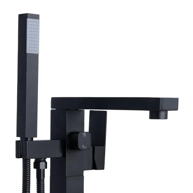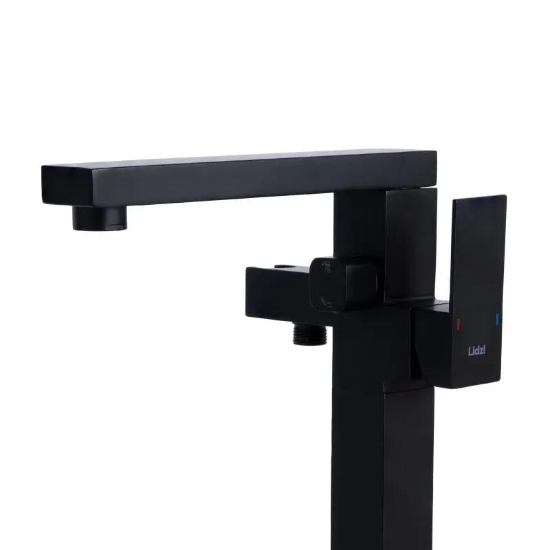 Смеситель для ванны напольный Lidz Kubis 004 (с душевым гарнитуром) (k35) Black — это стильное решение для современных ванных комнат. Матовый черный цвет придает изделию роскошный и утончённый вид. Смеситель выполнен в напольной конструкции, идеально подходящей для ванн свободной установки, и оснащен душевым гарнитуром для максимального удобства.