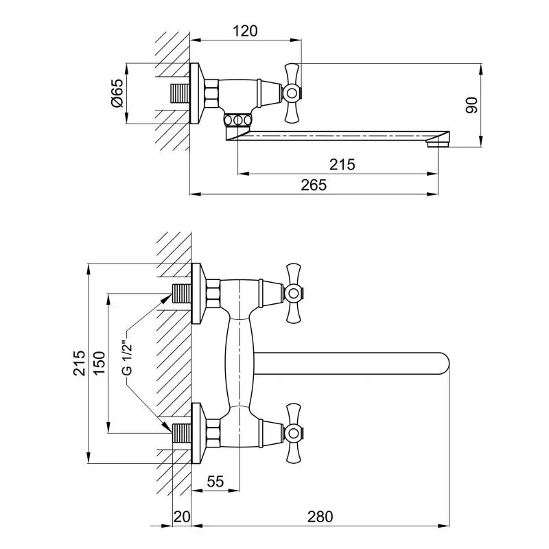 Смеситель для кухни lidz lamb 361 настенный с поворотным изливом двухвентильный ldlam361crm22309 chrome