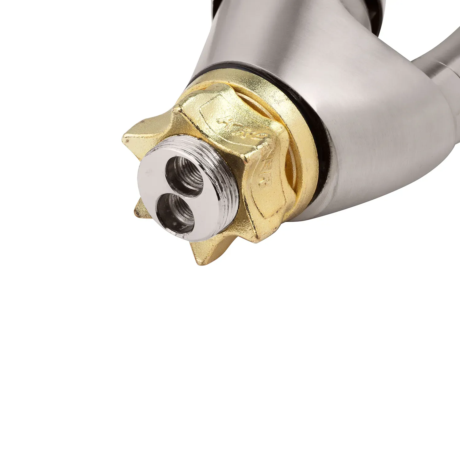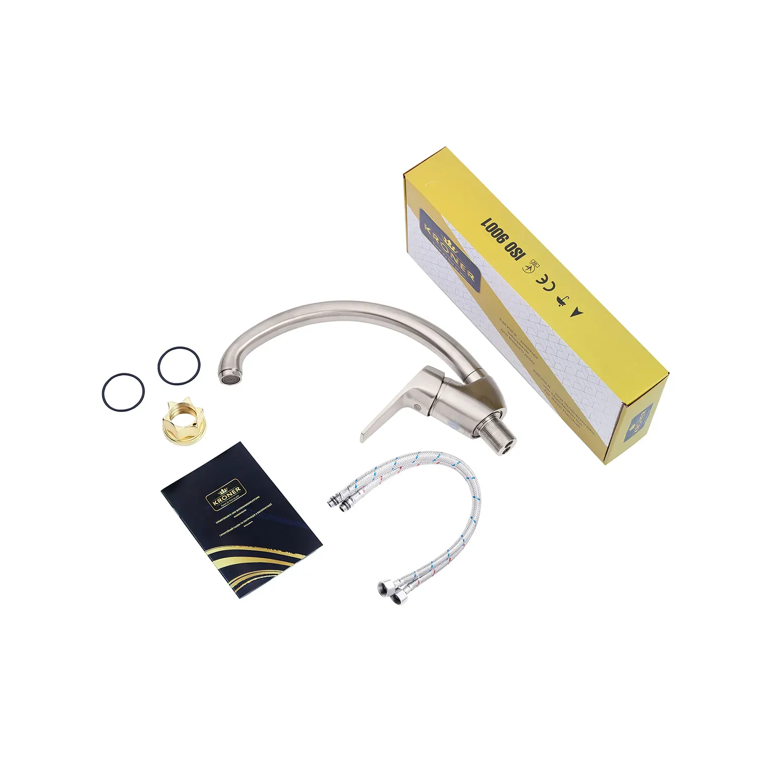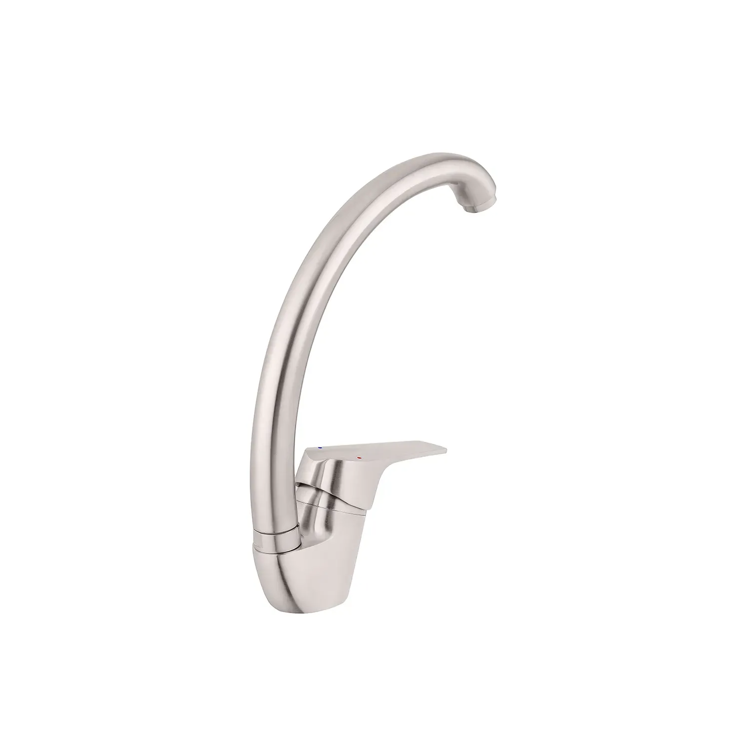 Смеситель для кухни Kroner KRM Odra-N035 – идеальный выбор для вашей кухни. Изготовлен из высококачественного силумина, гарантирует прочность и долговечность. Обладает привлекательным матовым никелевым цветом, что придает ему элегантность. Смеситель оснащен картриджным механизмом смешения, позволяющим удобно регулировать температуру воды. Его уникальная C-образная форма излива обеспечивает удобство при наполнении посуды или мытья продуктов. Наслаждайтесь функциональностью и стилем смесителя Kroner.