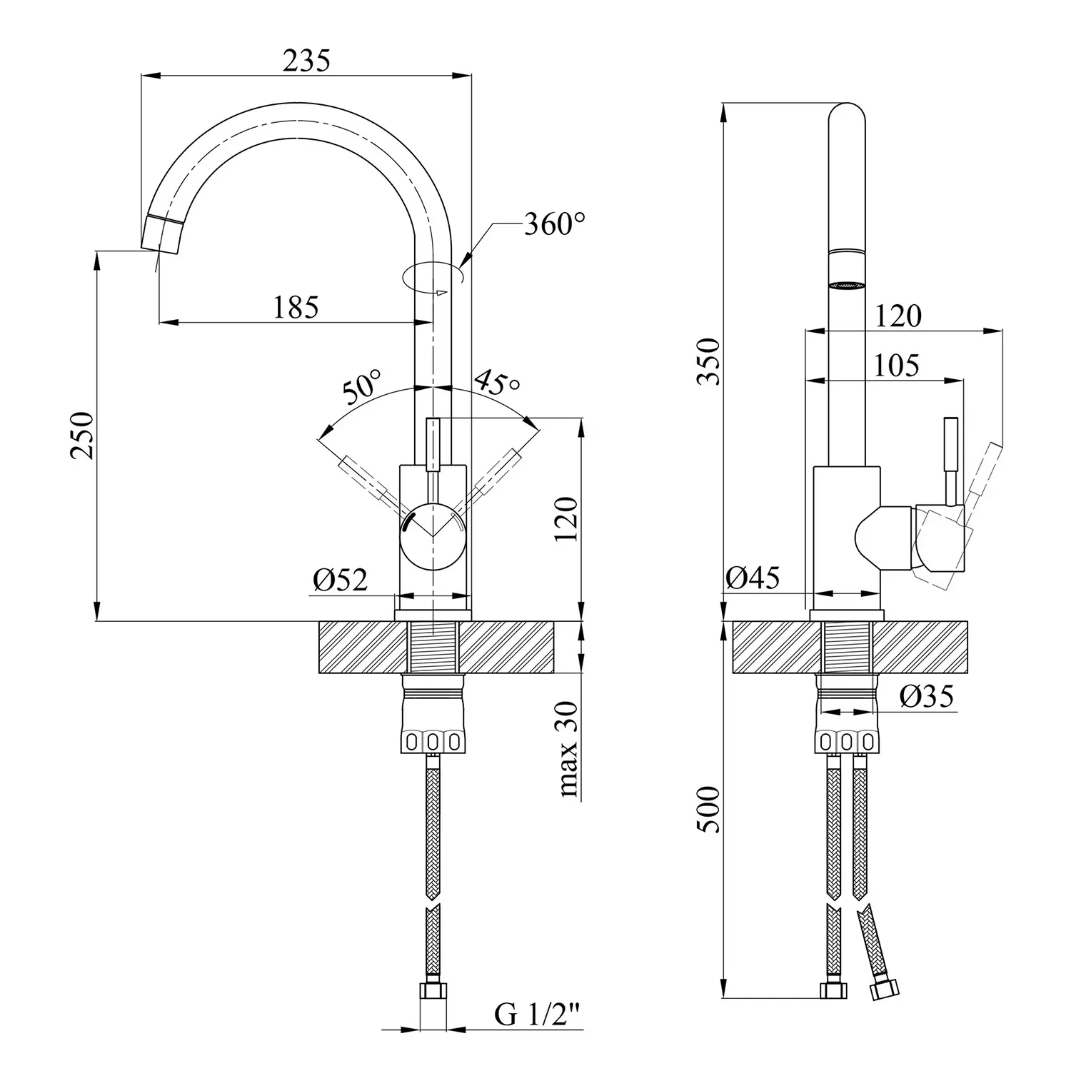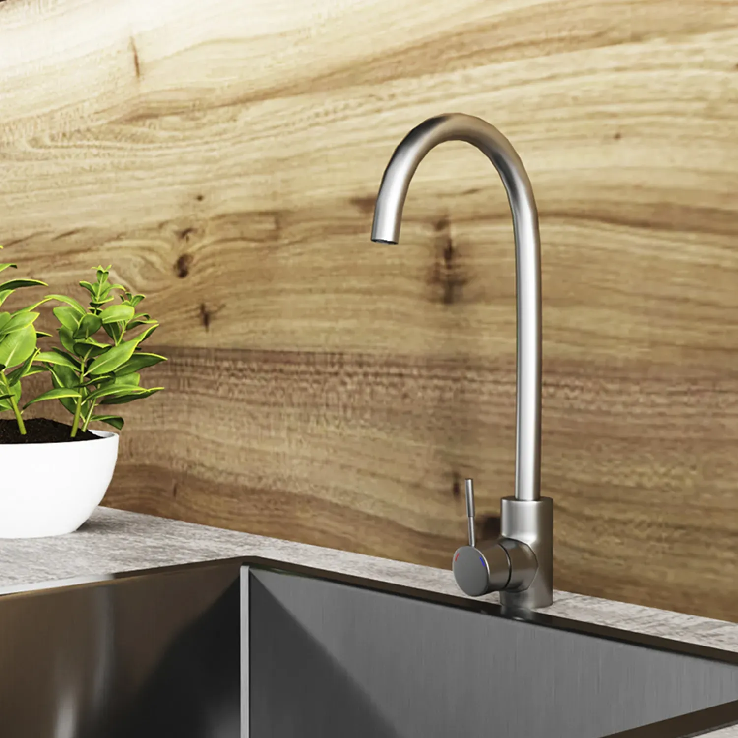 Смеситель для кухни Kroner KRP Edelstahl Klassisch – ESG035 – идеальный выбор для вашей кухни. Изготовлен из нержавеющей стали, гарантирует прочность и долговечность. Обладает привлекательным брошенным никелевым цветом, что придает ему элегантность. Смеситель оснащен картриджным механизмом смешения, позволяющим удобно регулировать температуру воды. Его уникальная U-образная форма излива обеспечивает удобство при наполнении посуды или мытья продуктов. Наслаждайтесь функциональностью и стилем смесителя Kroner.