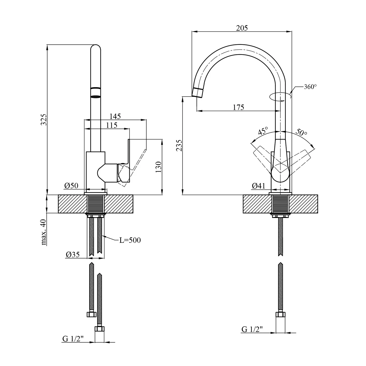 Смеситель имеет поворотное излияние, что придает ему уникальную гибкость при мытье габаритной посуды и наполнении емкостей водой. Аэратор, установленный на изливе, способствует равномерному распределению воды и экономии ее расхода.