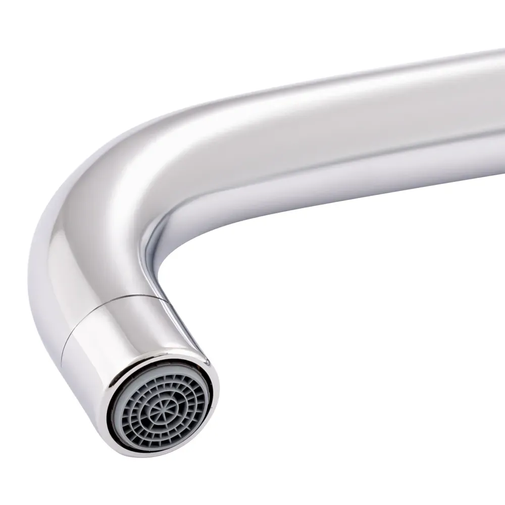 Смеситель для кухни Qtap Kuchyne 90102FC изготовлен из высококачественной пищевой латуни, которая не подвержена коррозии, устойчива к ударам и появлению трещин. Глянцевое хромированное покрытие не только повышает долговечность смесителя, но и придает ему привлекательности. Смеситель имеет оригинальный рычаг, с помощью которого можно отрегулировать температуру и напор воды. Смеситель выполнен в современном стиле, он идеально впишется в интерьер кухни.