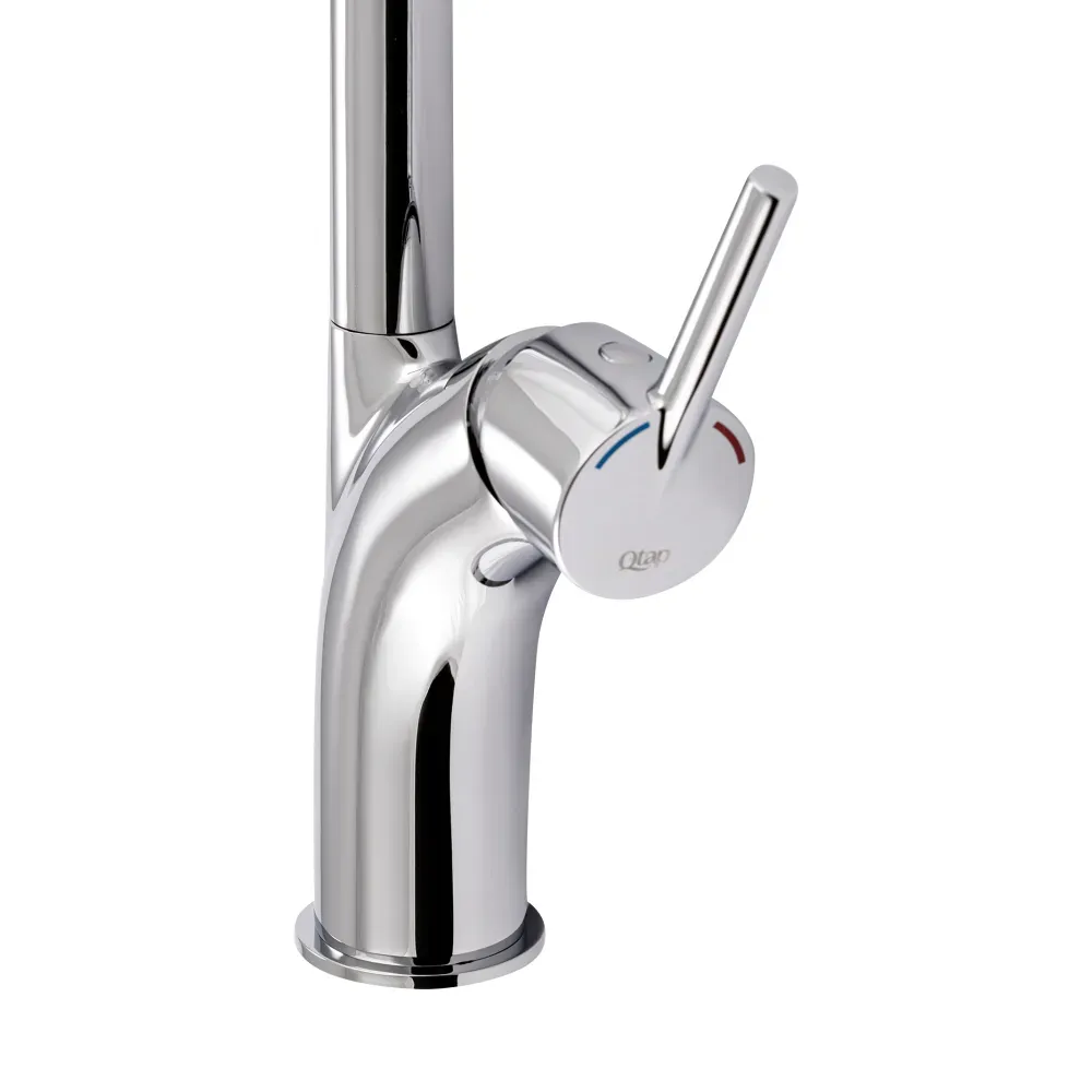 Смеситель для кухни Qtap Kuchyne 90102UC изготовлен из высококачественной пищевой латуни, которая не подвержена коррозии, устойчива к ударам и появлению трещин. Глянцевое хромированное покрытие не только повышает долговечность смесителя, но и придает ему привлекательности. Смеситель имеет однорычажное управление, с помощью которого можно отрегулировать температуру и напор воды. Смеситель выполнен в современном стиле, он идеально впишется в интерьер кухни.