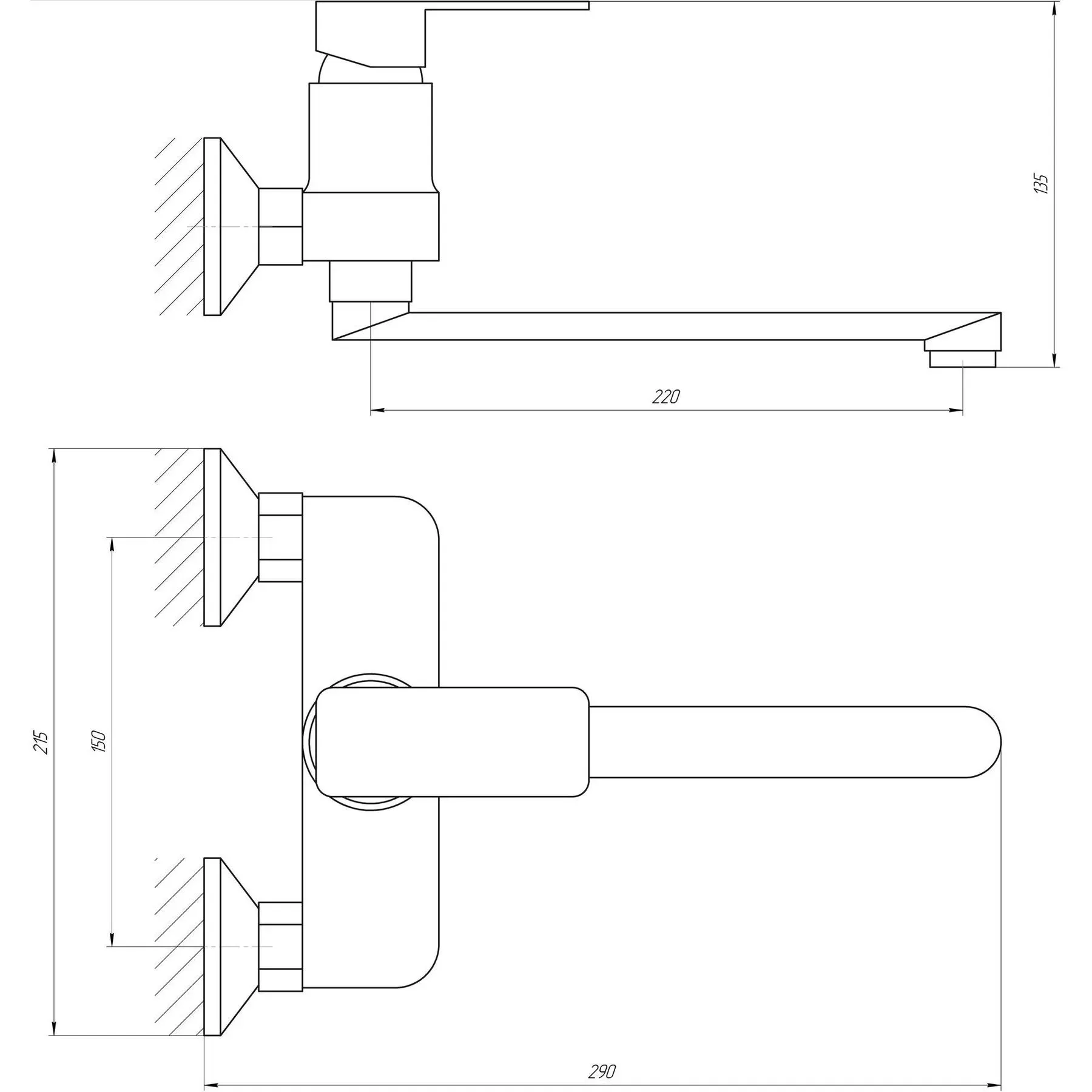 Смеситель MILANO GLM-104 Globus Lux для кухни настенный L-250мм