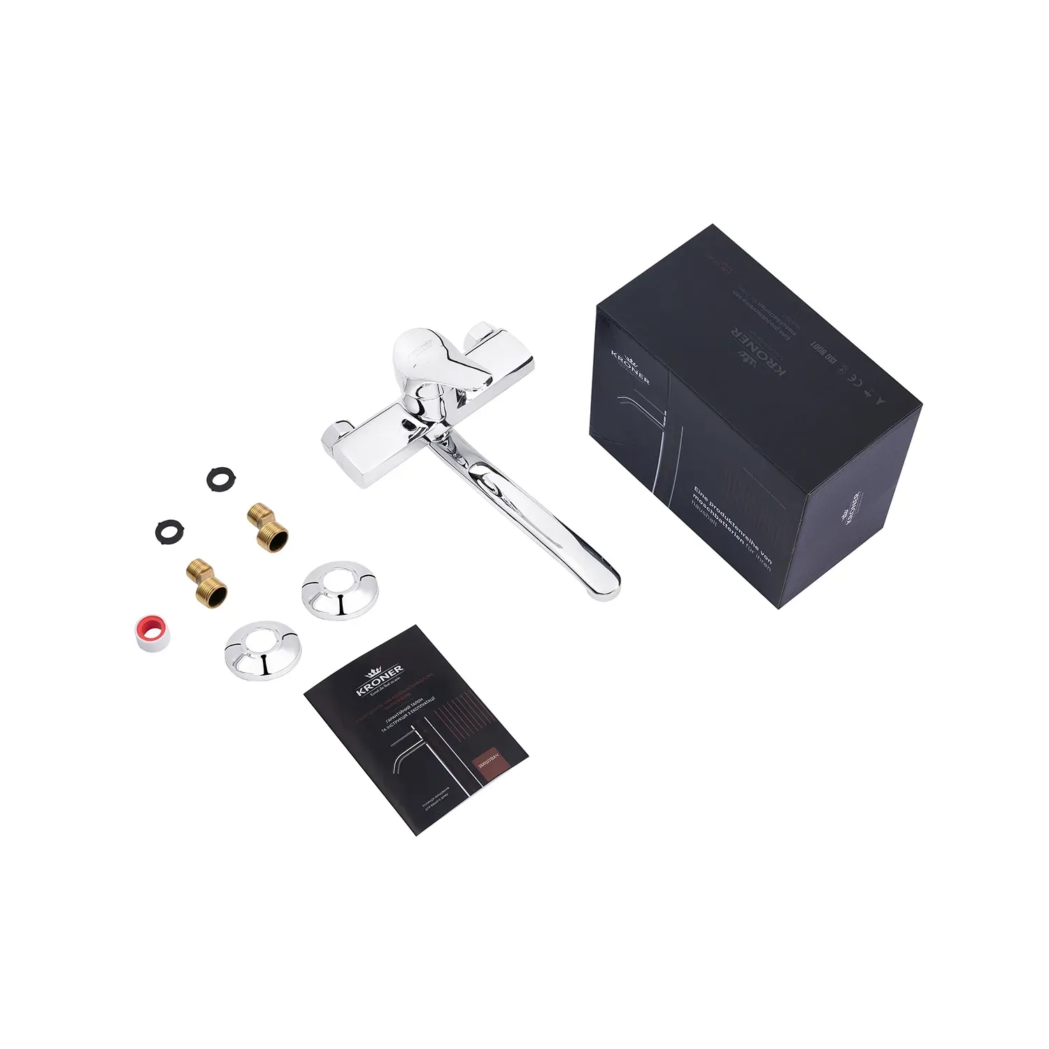 Смеситель для кухни Kroner KRP Bayern – С040 – идеальный выбор для вашей кухни. Изготовлен из высококачественной латуни, гарантирует прочность и долговечность. Обладает привлекательным глянцевым хромированным цветом, что придает ему элегантность. Смеситель оснащен картриджным механизмом смешения, позволяющим удобно регулировать температуру воды. Его прямая форма излива обеспечивает удобство при наполнении посуды или мытья продуктов. Наслаждайтесь функциональностью и стилем смесителя Kroner.