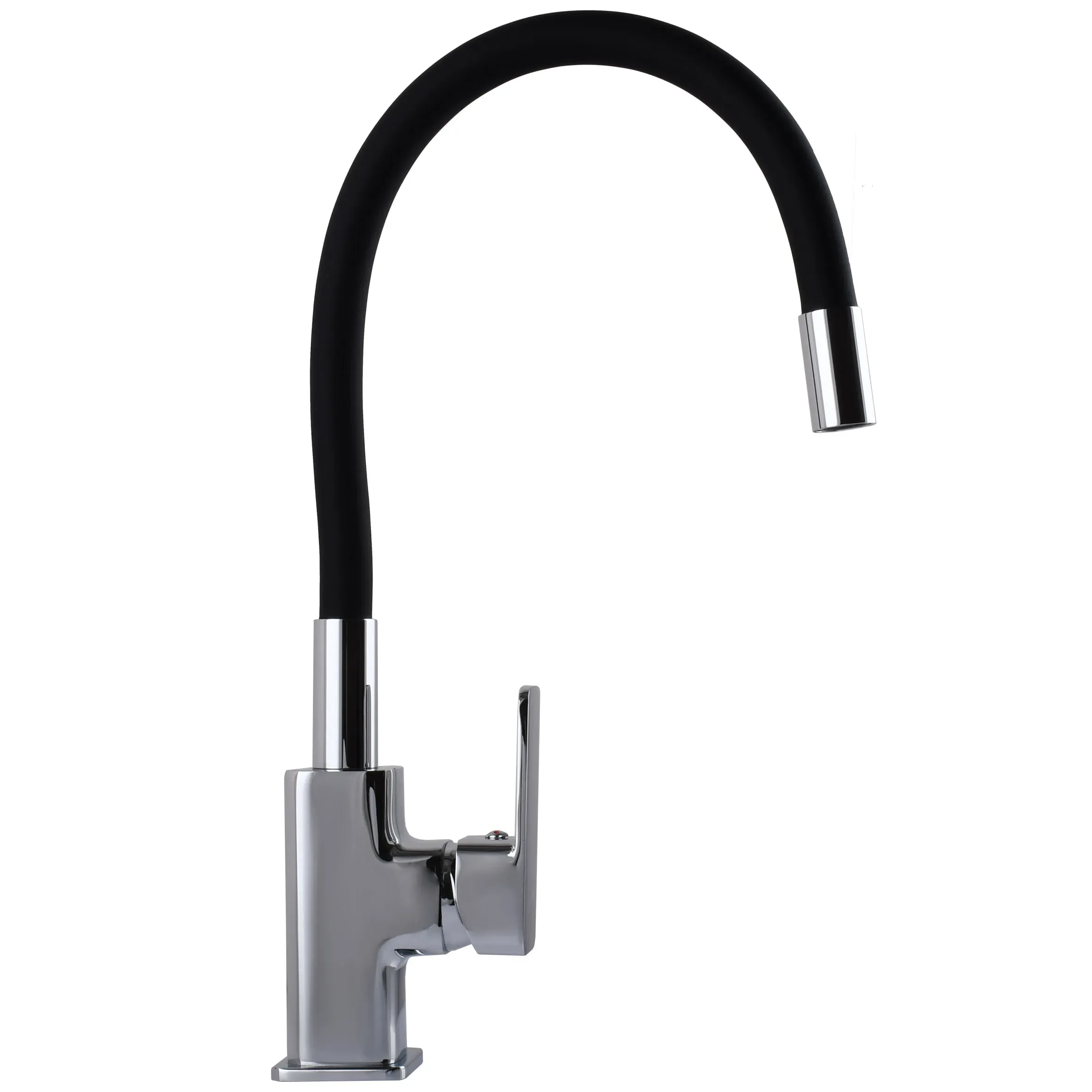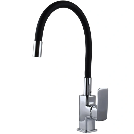 Функциональный смеситель для кухни с гусаком, направление и высота которого регулируется, как удобно потребителю. Универсальный черный цвет гусака подойдет в любой интерьер. Хромированное покрытие корпуса придает смесителю утонченность.