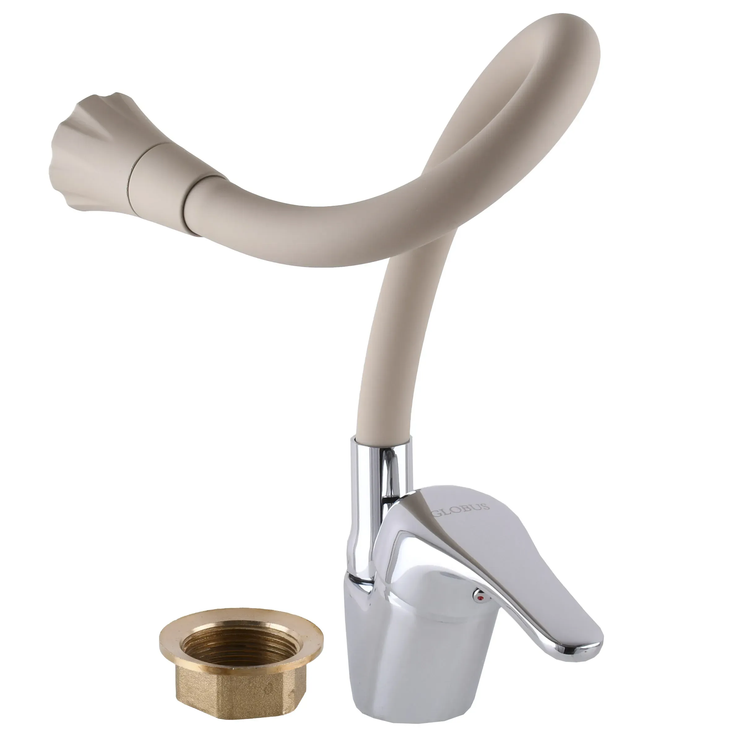 Смеситель Globus Lux GLSO-0203SA-K15, бежевый гофроизлив с душевой насадкой