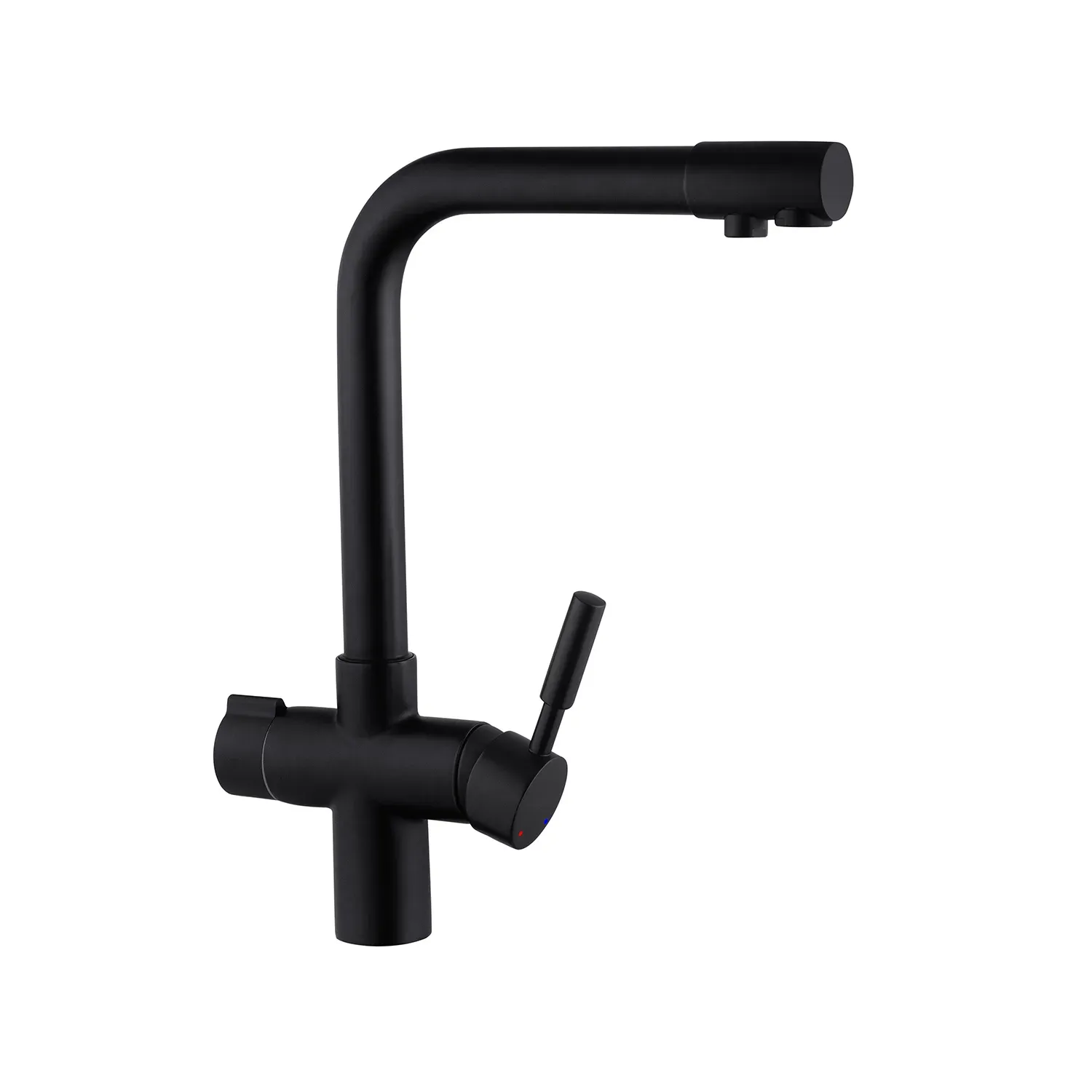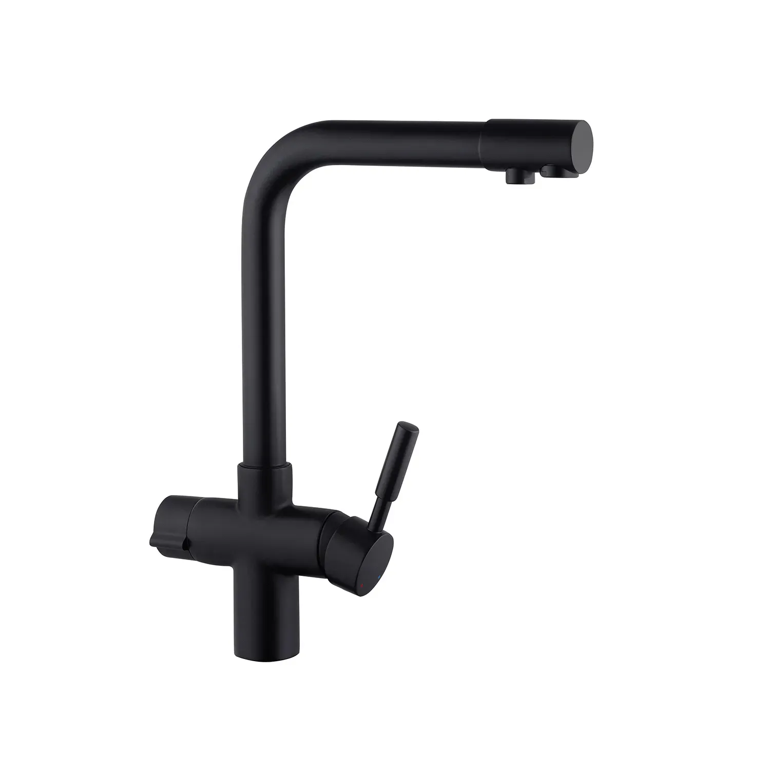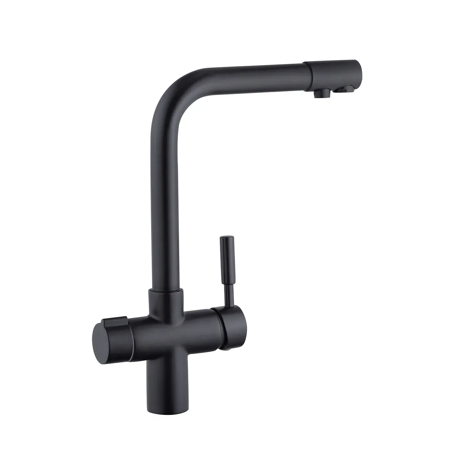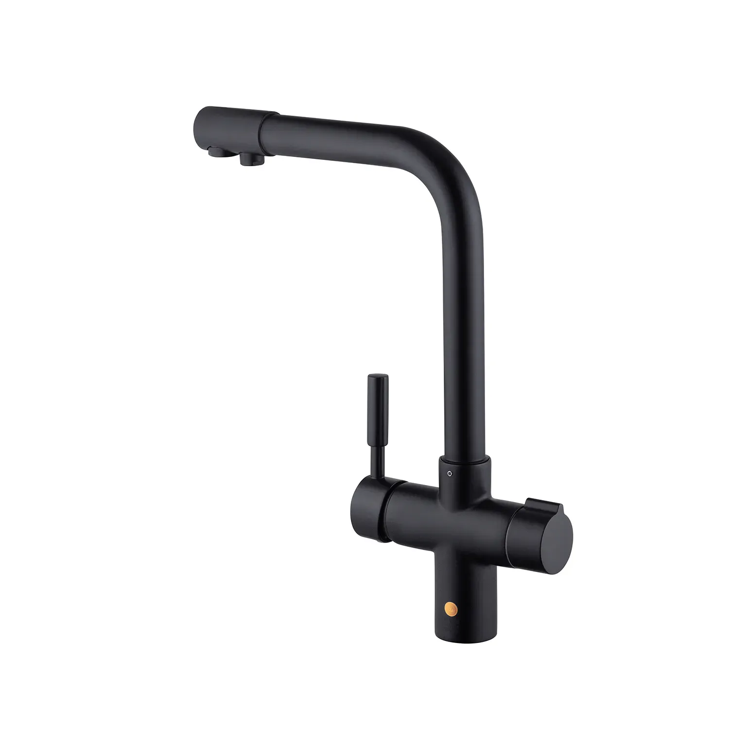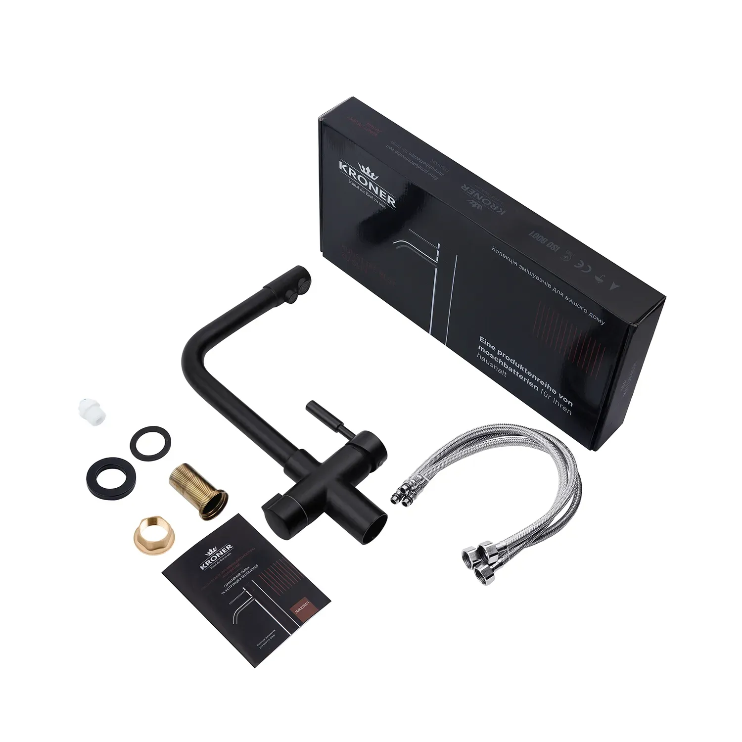 Смеситель для кухни Kroner KRP Küche – SCH0381 – идеальный выбор для вашей кухни. Изготовлен из высококачественной латуни, гарантирует прочность и долговечность. Обладает привлекательным матовым черным цветом, что придает ему элегантность. Смеситель оснащен картриджным механизмом смешения, позволяющим удобно регулировать температуру воды. Его уникальная Г-образная форма излива обеспечивает удобство при наполнении посуды или мытья продуктов. Наслаждайтесь функциональностью и стилем смесителя Kroner.