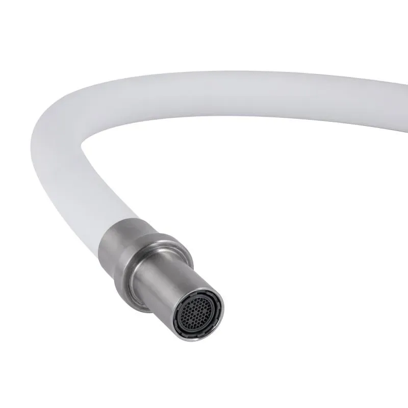 Смеситель для кухни Lidz Aria 020F3 с гибким изливом с подключением для питьевой воды (k35) White / Nickel сочетает в себе функциональность гибкого излива и возможность подключения питьевой воды. Гибкий излив делает использование смесителя максимально удобным, а материалы высокого качества обеспечивают его долговечность.