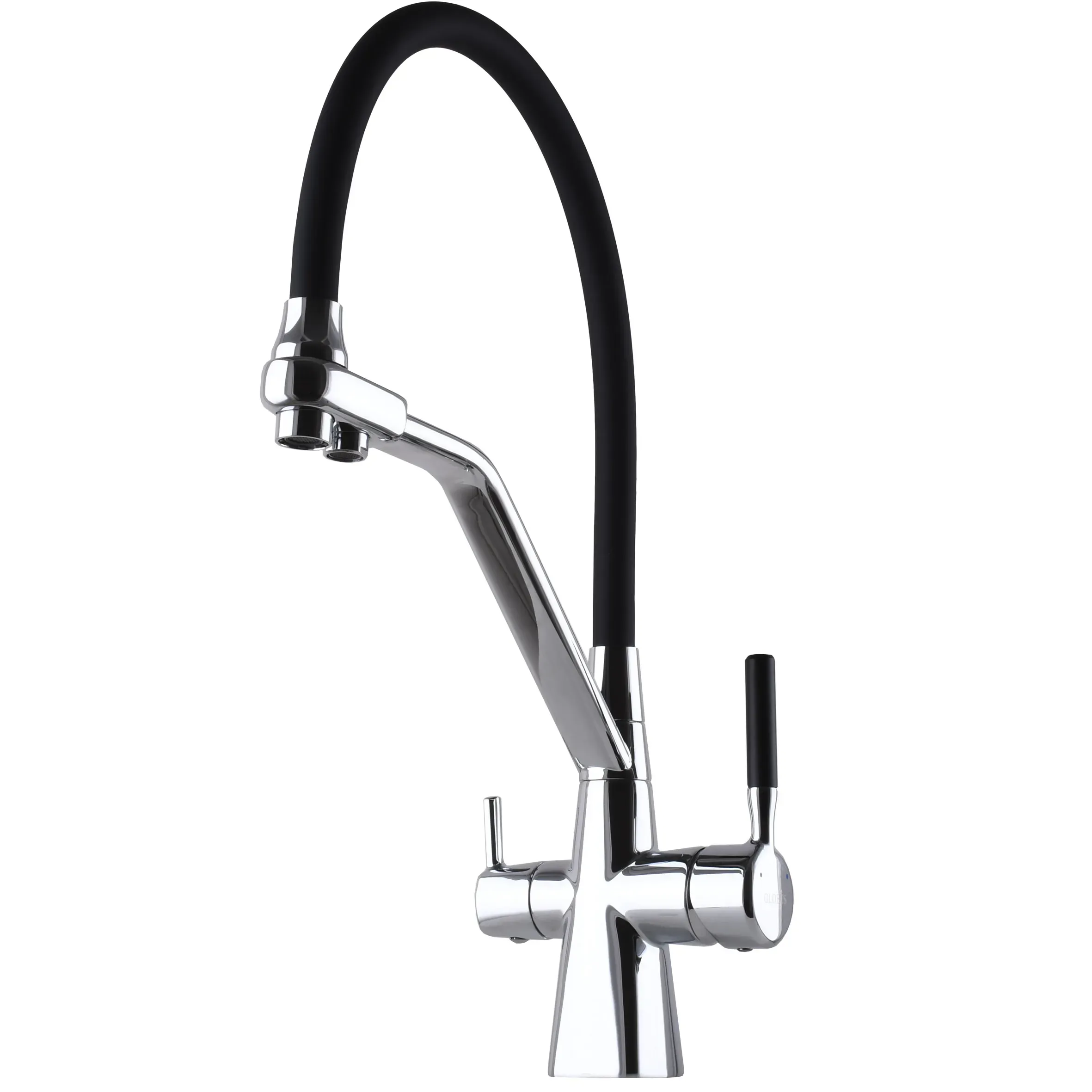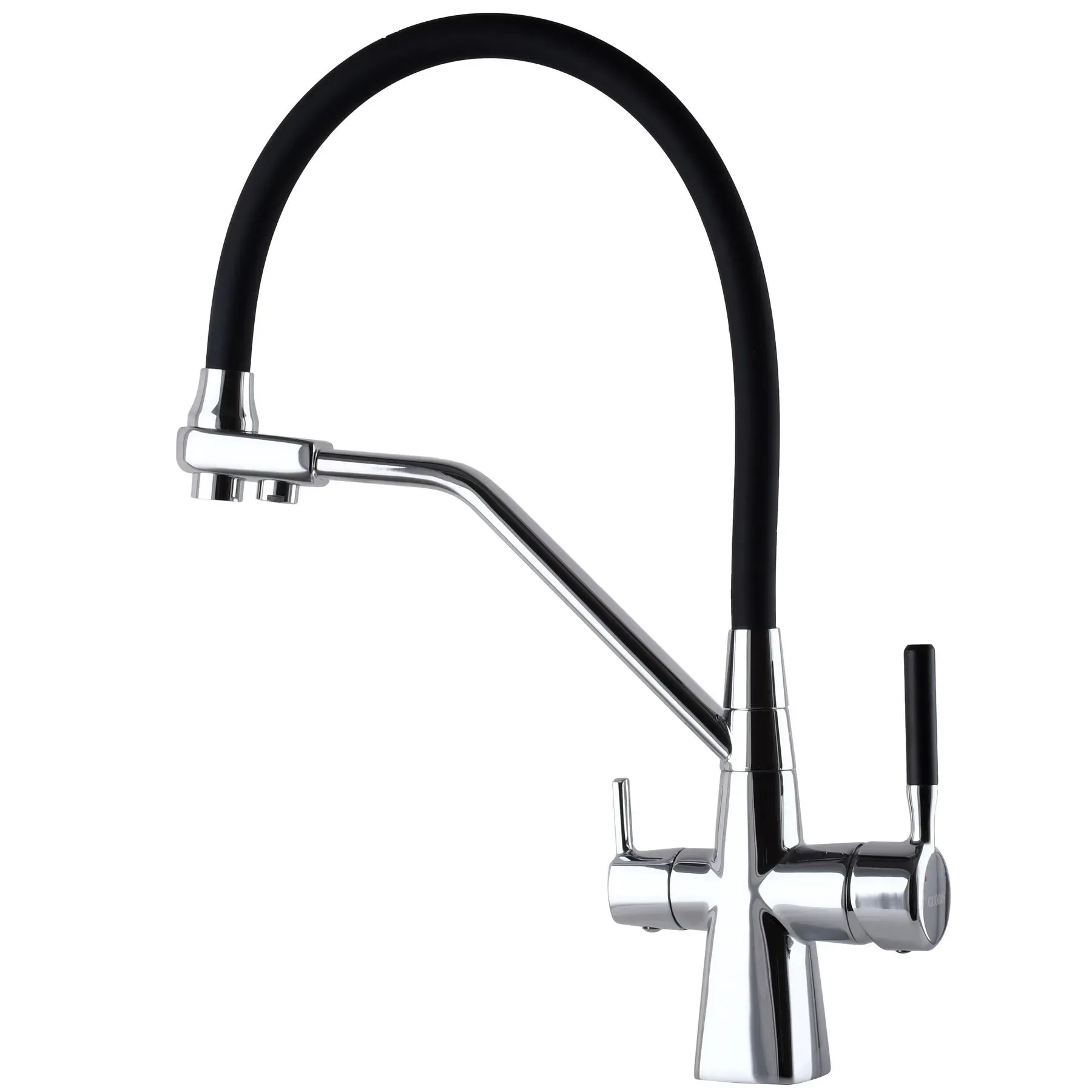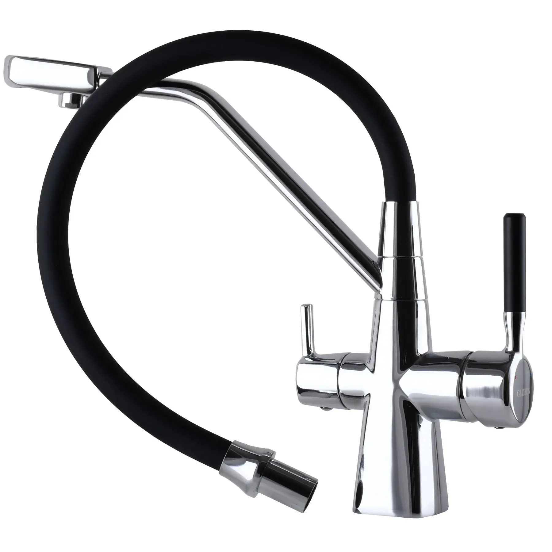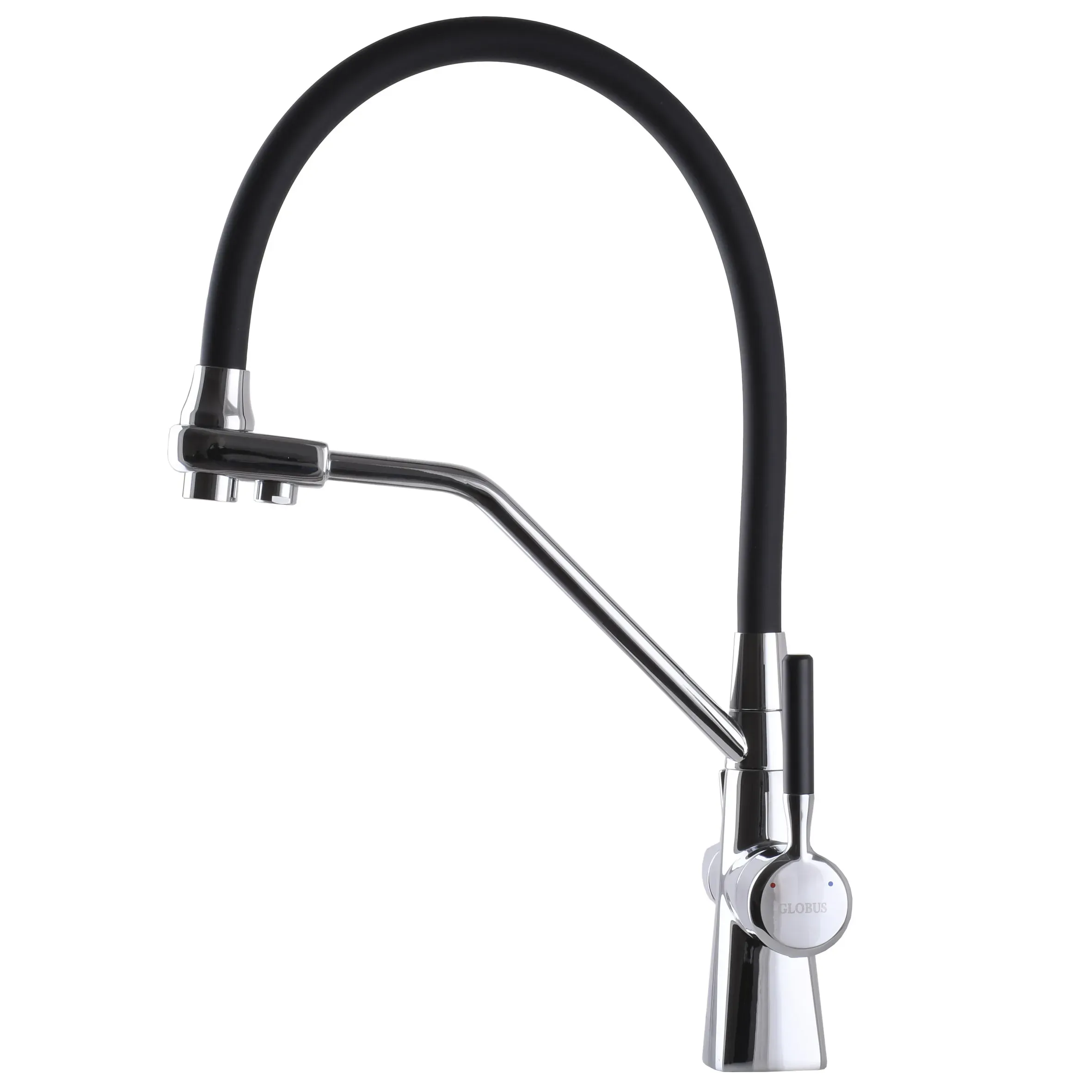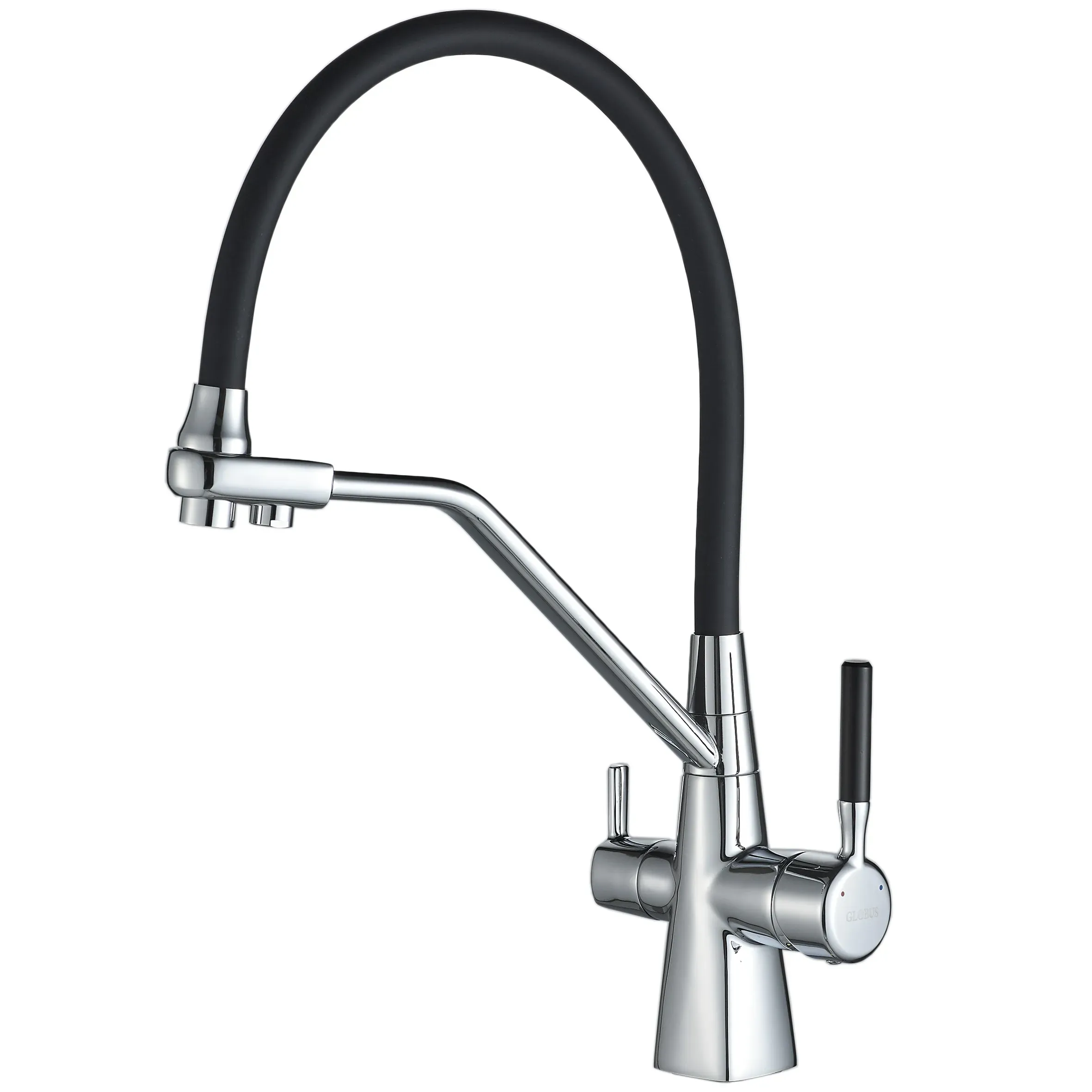 Смеситель кухонный Globus Lux LAZER GLLR-0700-L-00-01, комбинированный под ОСМОС, черный гофрогусак, цвет корпуса- хром