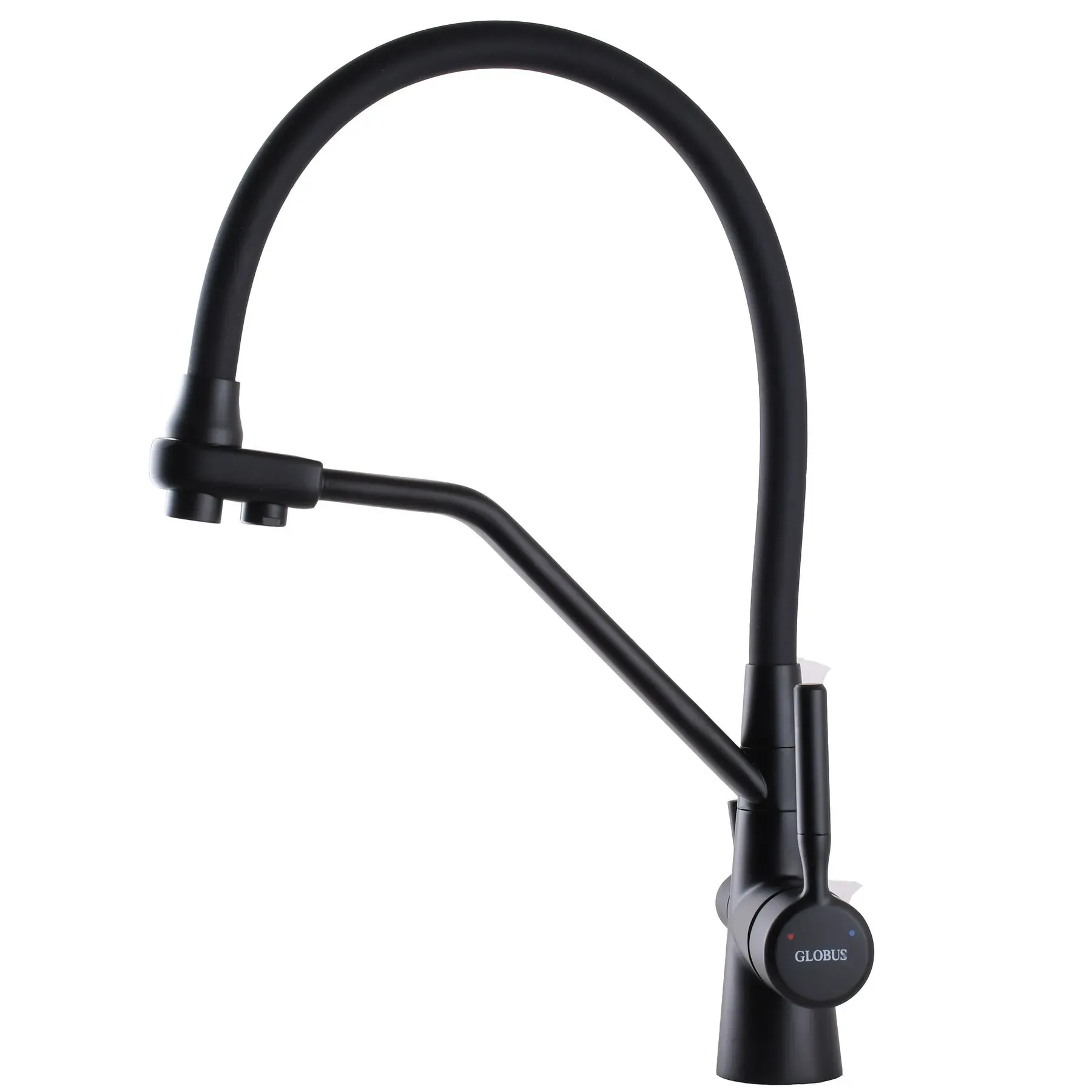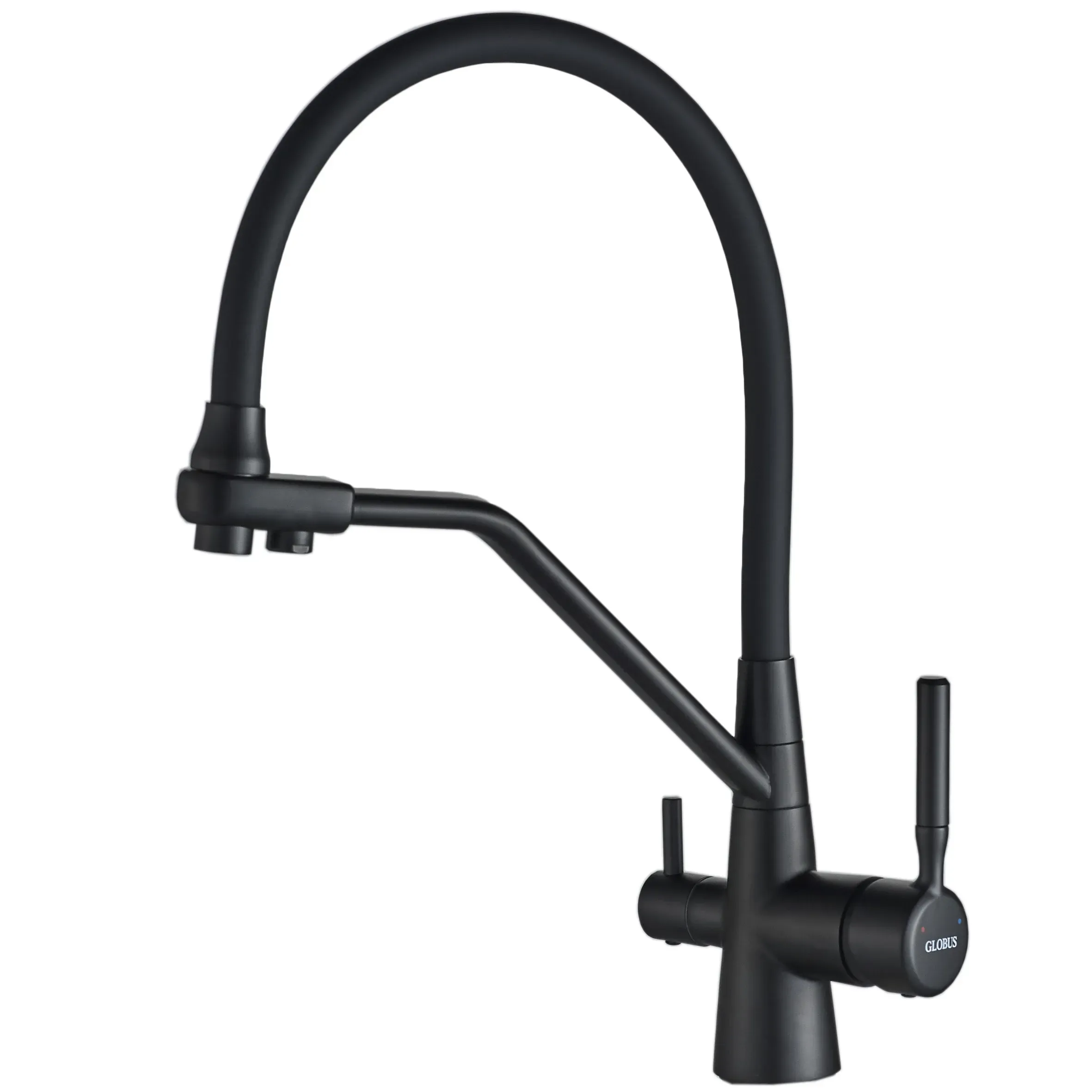 Смеситель кухонный Globus Lux LAZER GLLR-0800-10-01, комбинированный под ОСМОС, черный гофрогусак, цвет корпуса- черный