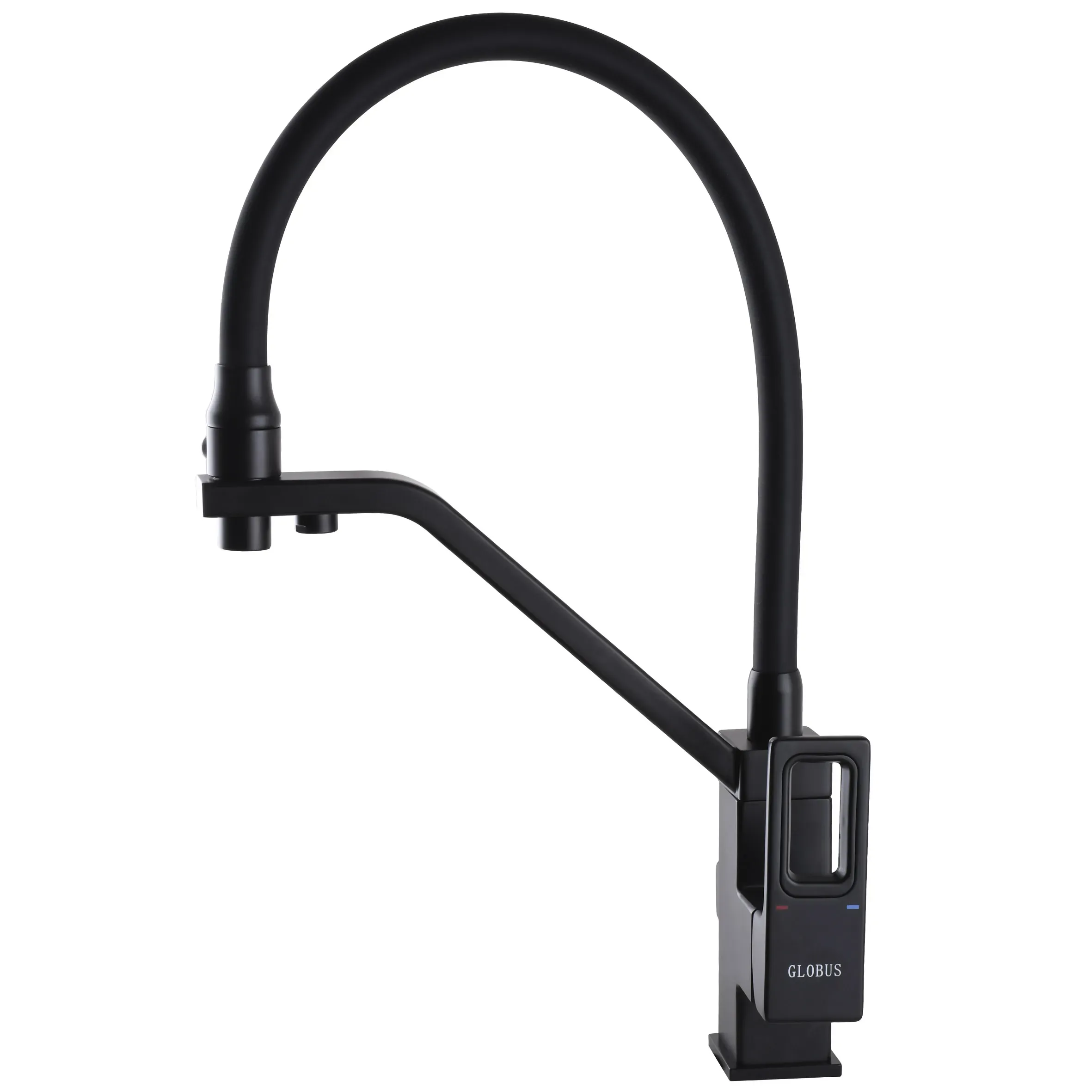 Смеситель кухонный Globus Lux LAZER GLLR-0900-10-01, комбинированный под ОСМОС, черный гофрогусак, цвет корпуса- черный