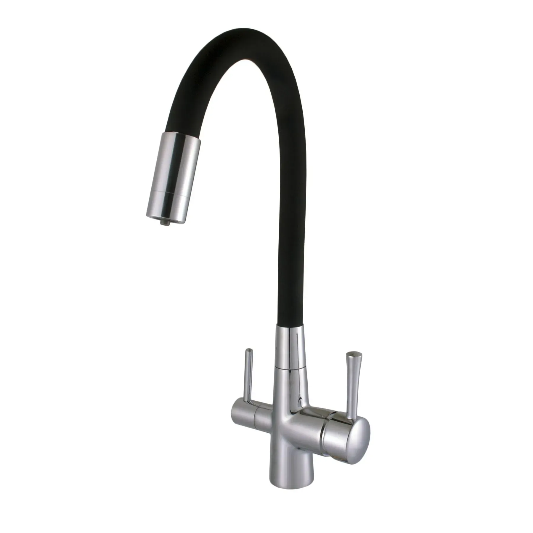 Смеситель кухонный Globus Lux LAZER GLLR-903-00, комбинированный под ОСМОС, черный гофрогусак, цвет корпуса- хром