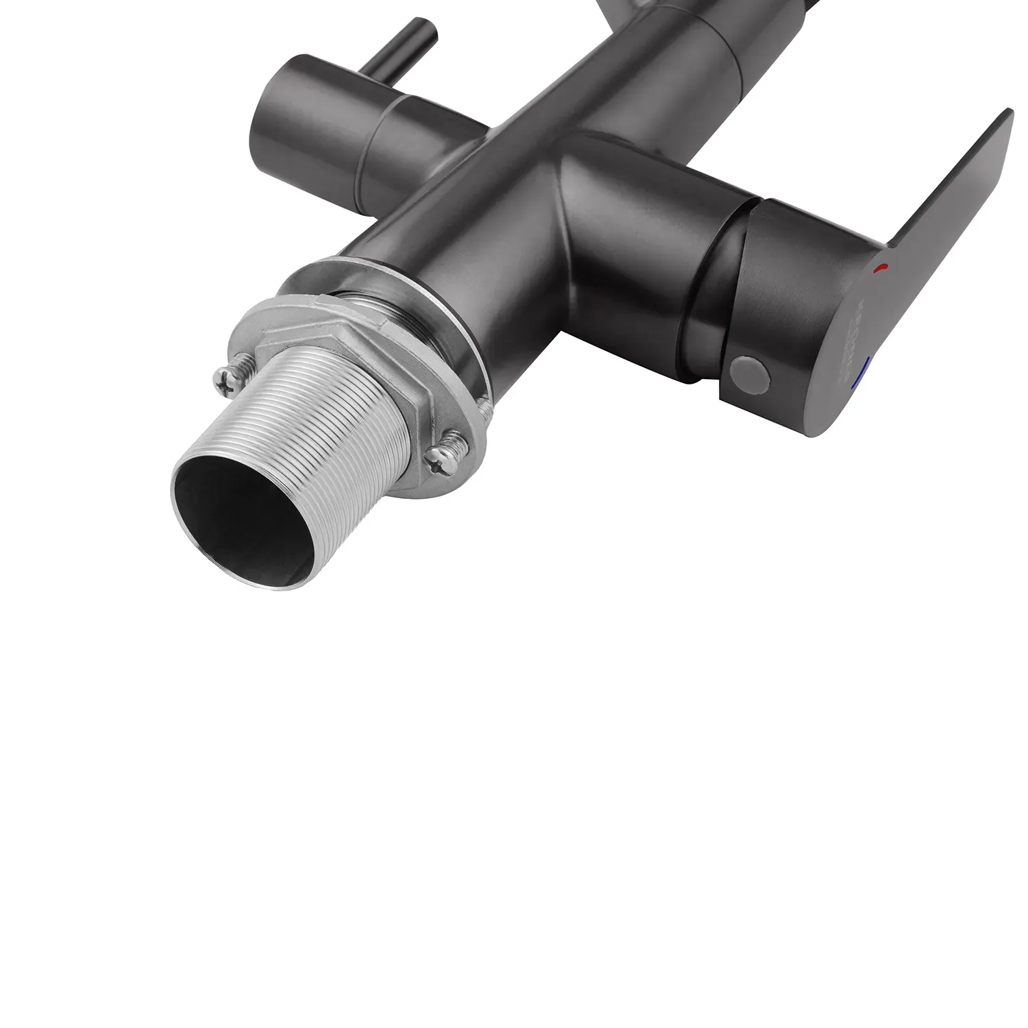 Модель предназначена для одновременного подключения к водопроводу и фильтру, обеспечивая возможность использования как обычной, так и питьевой воды. Это удобное решение для поддержания здорового образа жизни.