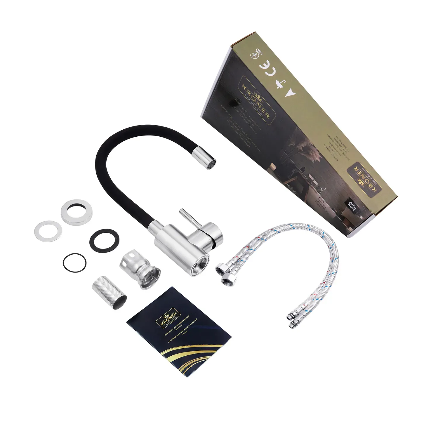 Смеситель для кухни с гибким изливом Kroner KRP Edelstahl Klassisch – ESG035BLK – идеальный выбор для вашей кухни. Изготовлен из нержавеющей стали, гарантирует прочность и долговечность. Обладает привлекательным брошенным черным цветом, что придает ему элегантность. Смеситель оснащен картриджным механизмом смешения, позволяющим удобно регулировать температуру воды. Его уникальная U-образная форма излива обеспечивает удобство при наполнении посуды или мытья продуктов. Наслаждайтесь функциональностью и стилем смесителя Kroner.