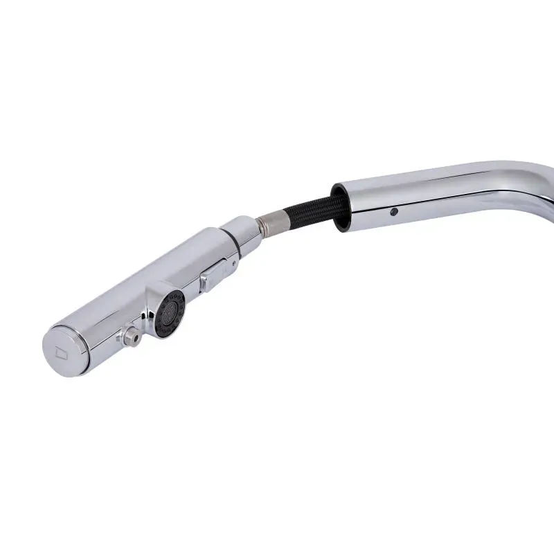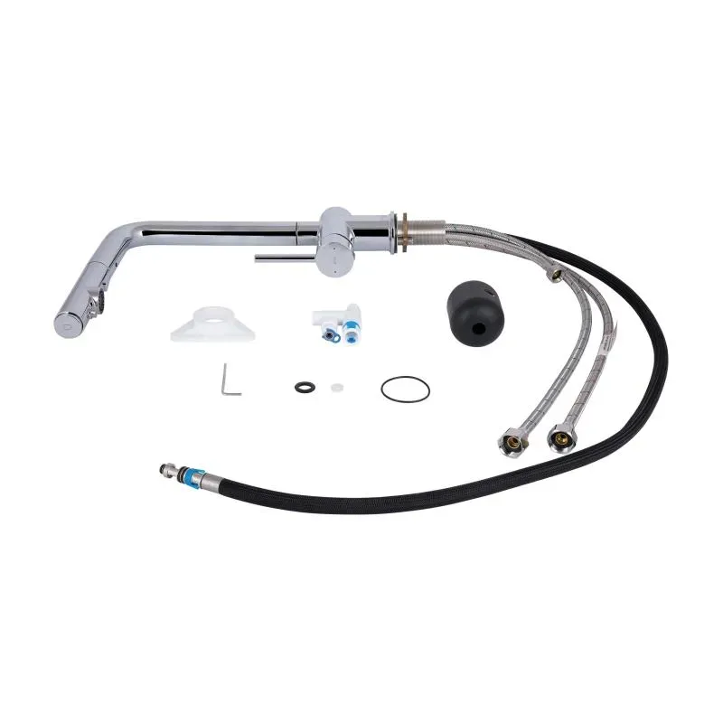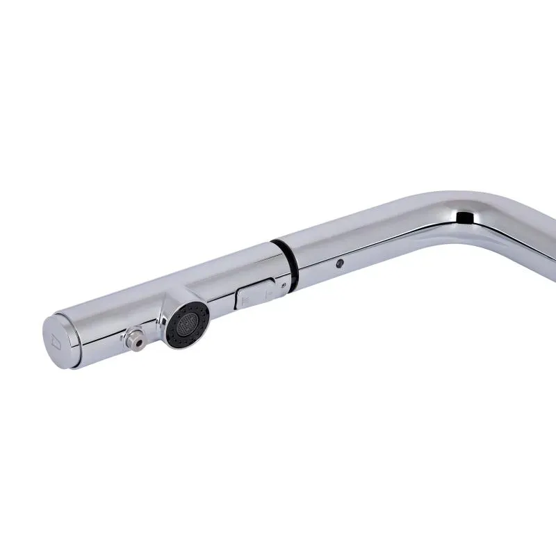 Смеситель для кухни Qtap Rozcesti QTROZ367CRM45941 в хромированном исполнении сочетает в себе элегантный дизайн и высокую практичность. Выдвижной излив облегчает процесс мытья посуды и наполнения больших емкостей, а подключение для питьевой воды обеспечивает доступ к чистой воде без необходимости установки дополнительного крана. Хромированное покрытие защищает смеситель от коррозии и повреждений, обеспечивая его долговечность и привлекательный внешний вид.