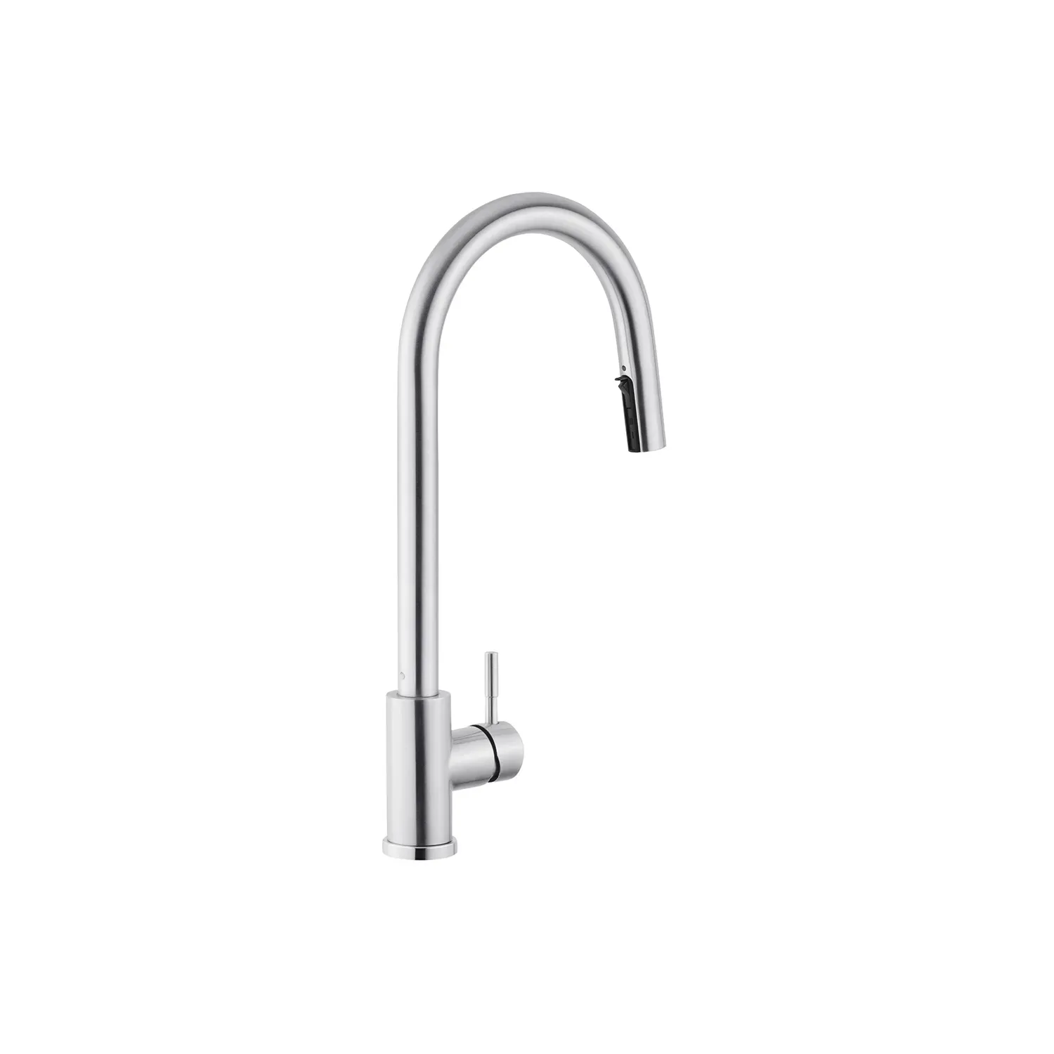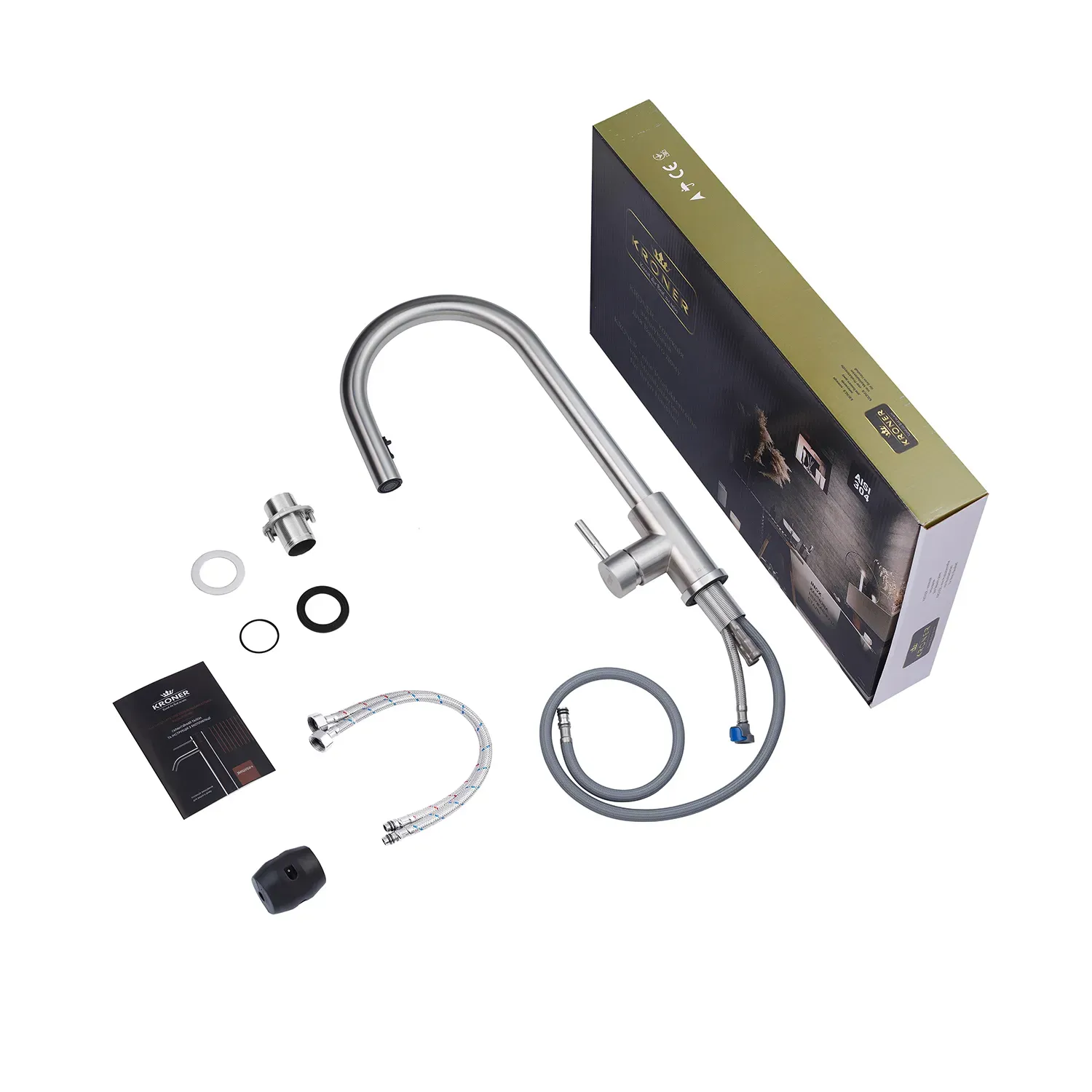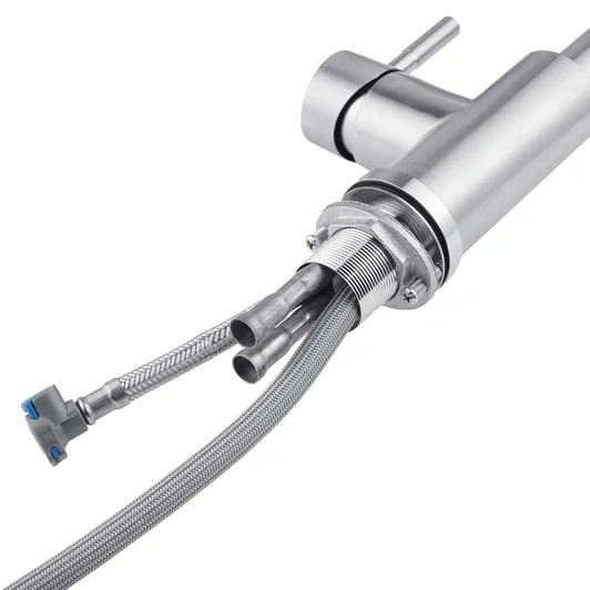 Смеситель для кухни Kroner KRP Edelstahl Klassisch - ESG03915 – это изысканное изделие из нержавеющей стали, сочетающее в себе эстетику и функциональность. Отлично подойдет для современных кухонь. -подобная форма выливу придают ему элегантный вид. Смеситель оснащен выдвижным/поворотным изливом, что обеспечивает удобство использования. Механизм смешивания с картриджем диаметром 35 мм гарантирует надежность и долговечность. установки простым и удобным. Этот смеситель соответствует высоким стандартам. удобства и стиля в современной кухне.