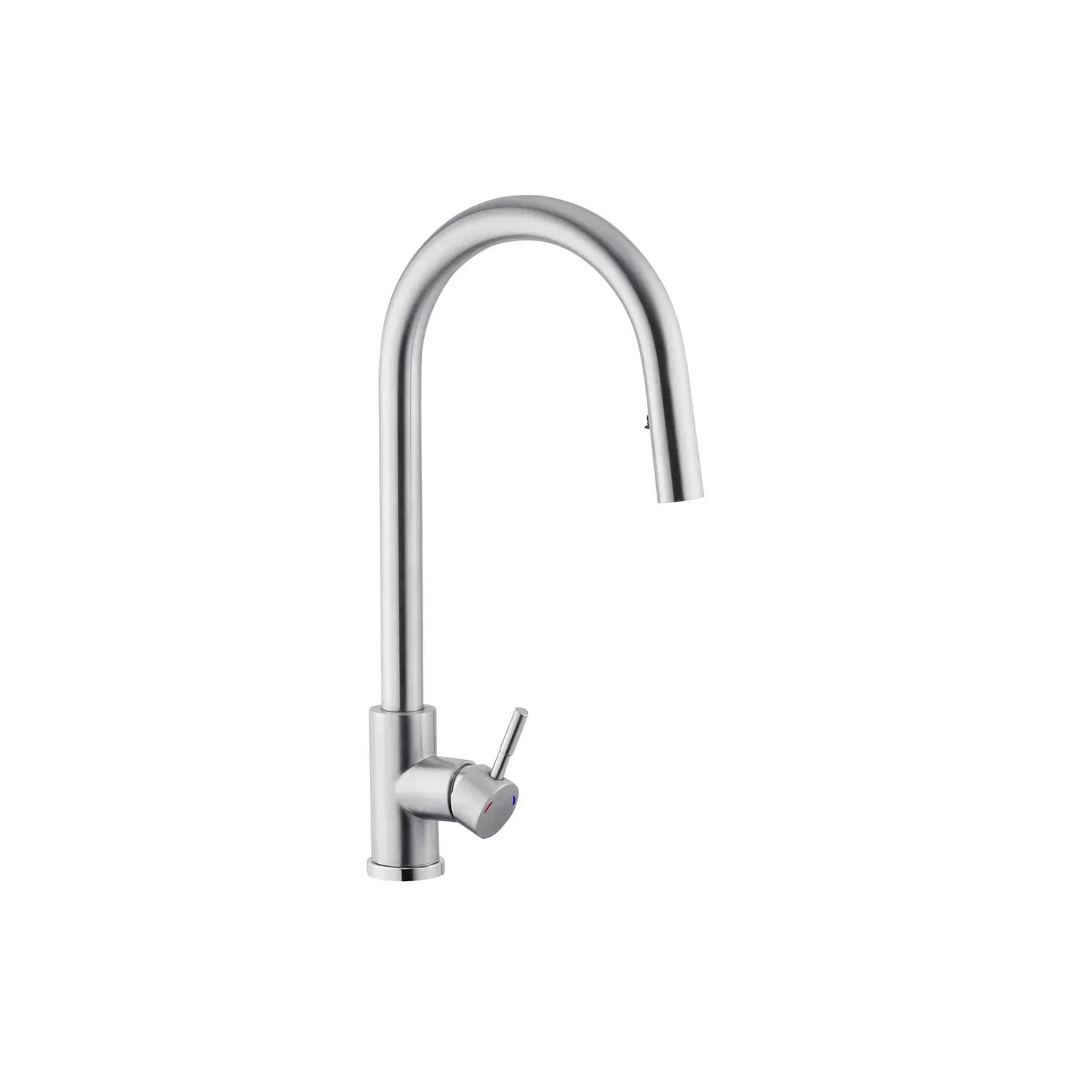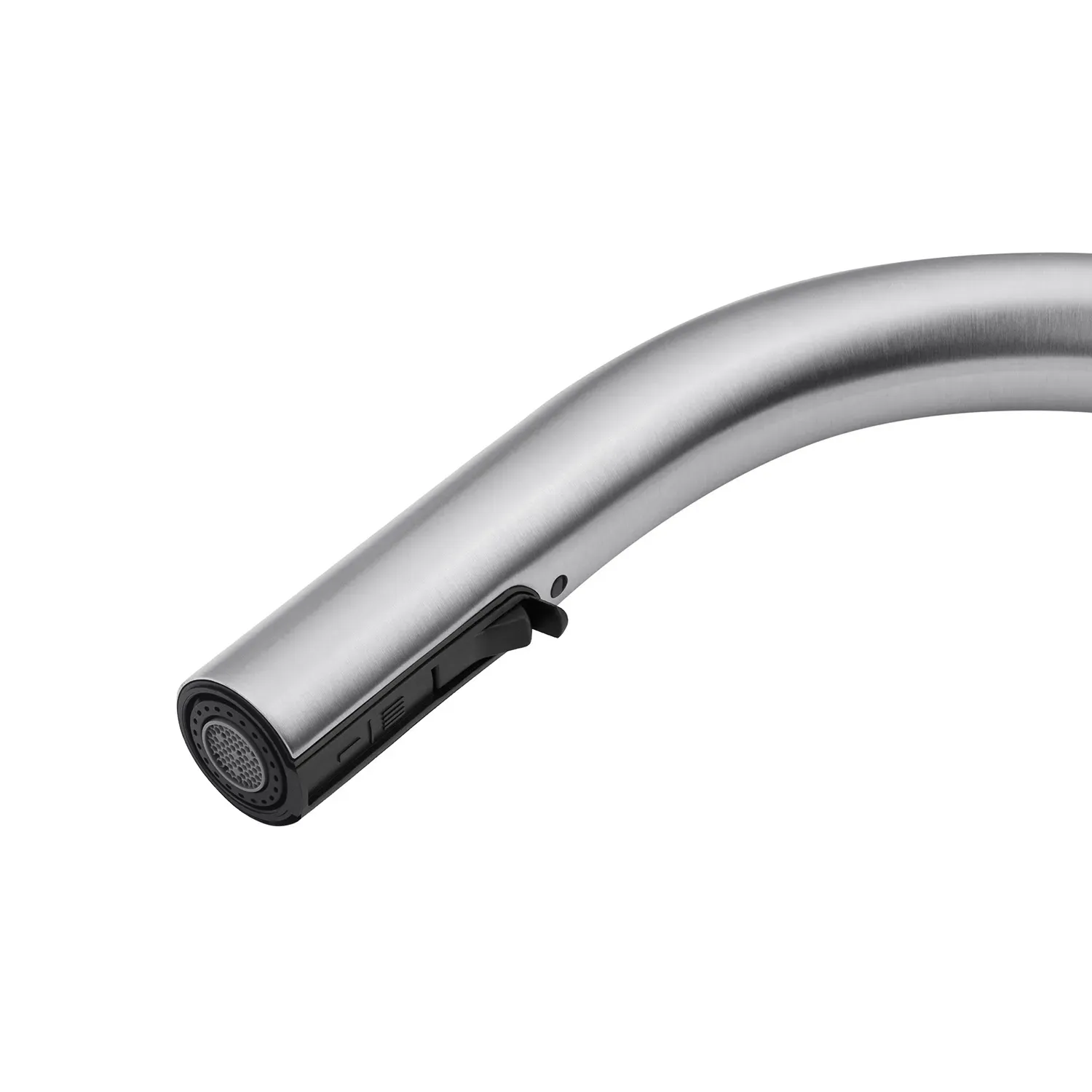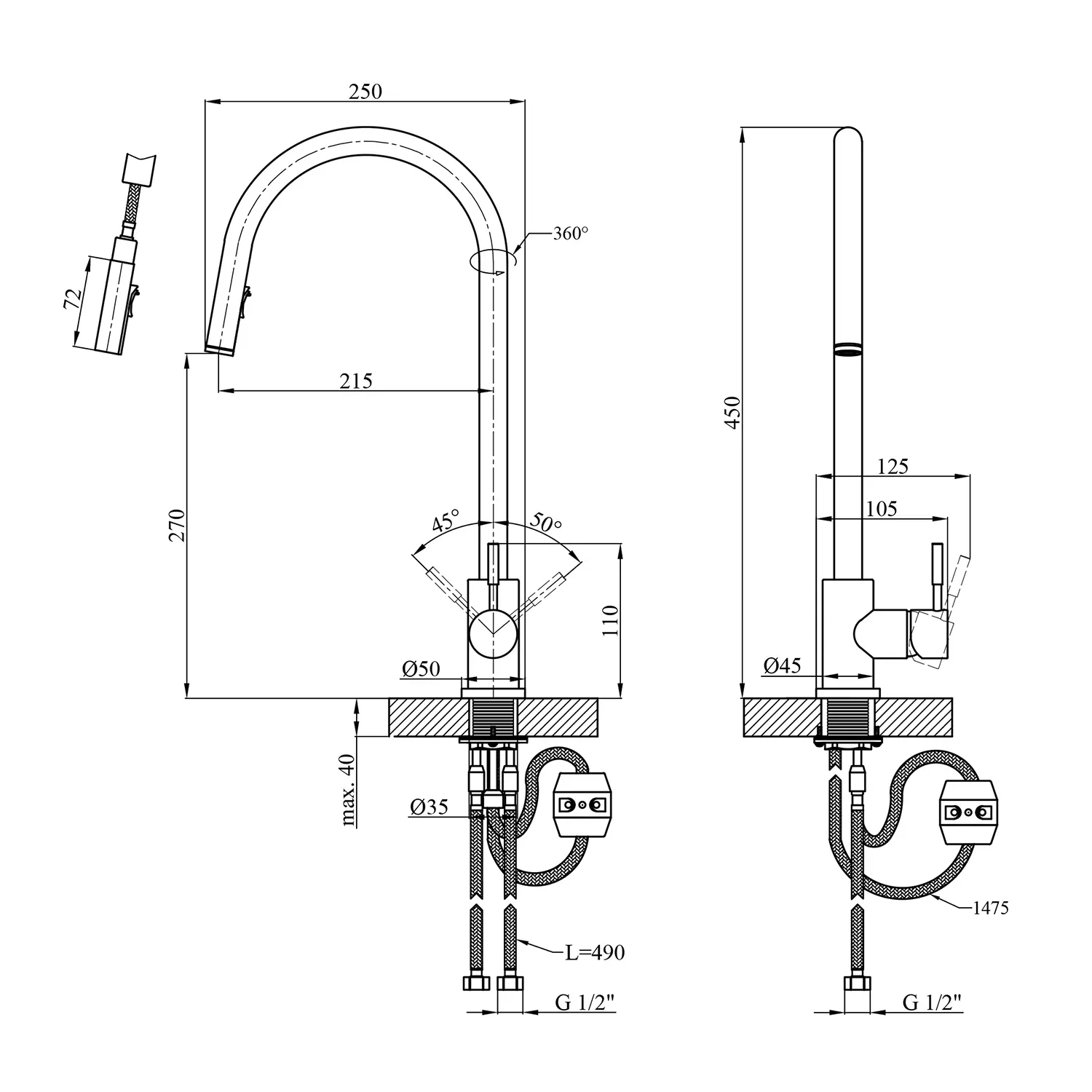 Смеситель для кухни Kroner KRP Edelstahl Klassisch - ESG03915 – это изысканное изделие из нержавеющей стали, сочетающее в себе эстетику и функциональность. Отлично подойдет для современных кухонь. -подобная форма выливу придают ему элегантный вид. Смеситель оснащен выдвижным/поворотным изливом, что обеспечивает удобство использования. Механизм смешивания с картриджем диаметром 35 мм гарантирует надежность и долговечность. установки простым и удобным. Этот смеситель соответствует высоким стандартам. удобства и стиля в современной кухне.