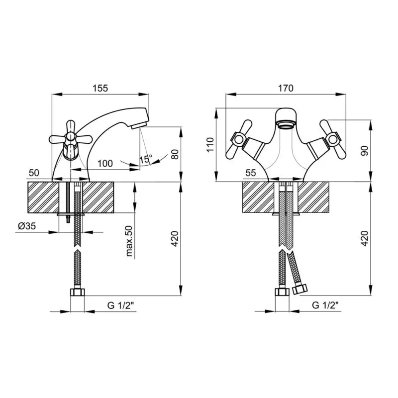 Смеситель для раковины lidz dominox 161 двухвентильный lddom161crm35532 chrome