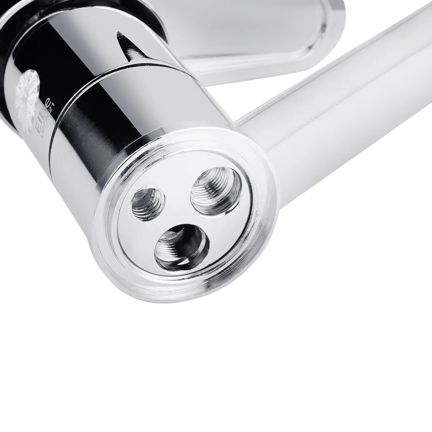 Смеситель для раковины Kroner KRM Elbe – C012 – стильный и практичный выбор для вашей ванной комнаты. Изготовлен из высококачественного силумина, гарантирует долговечность и надежность. Привлекательный хромированный цвет придает ему элегантность и современный вид. Картриджный механизм смешивания обеспечивает плавную регулировку температуры воды. Врезной способ монтажа позволяет сохранять эстетичный вид раковины, а глянцевая поверхность придает блеск и гарантирует легкую очистку. Смеситель Kroner – это стильный акцент, который придаст вашему дизайну особую гармонию и роскошь.